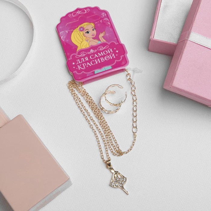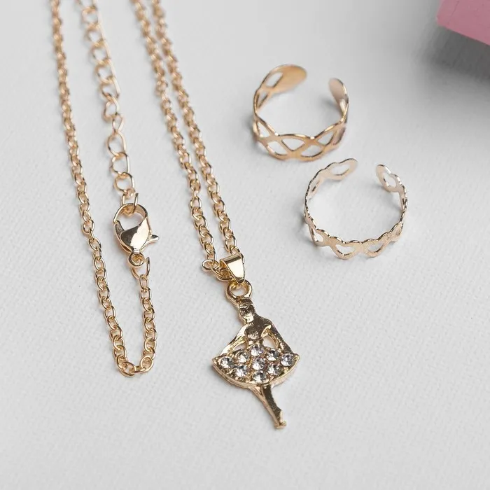 Набор детский «Выбражулька» 3 предмета: кулон 40 см, 2 кольца, балерина, белый в золоте