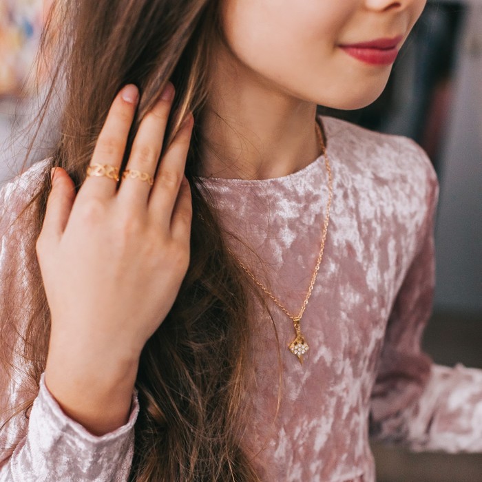 Набор детский «Выбражулька» 3 предмета: кулон 40 см, 2 кольца, балерина, белый в золоте — Характеристики