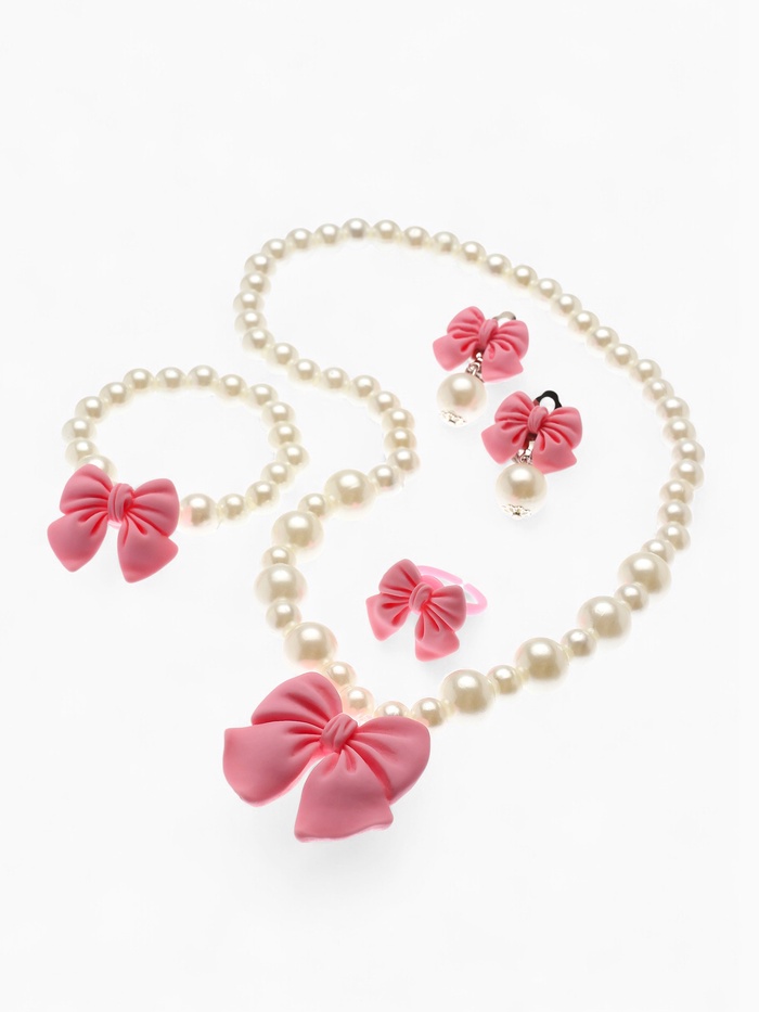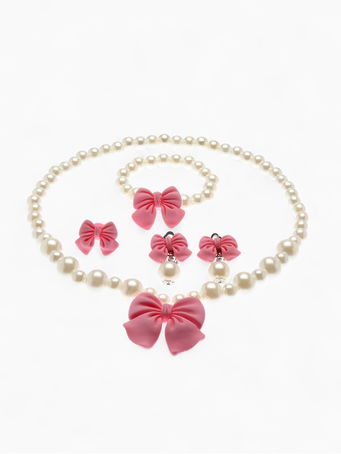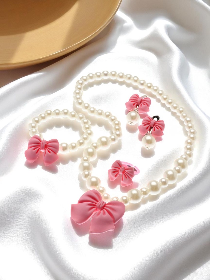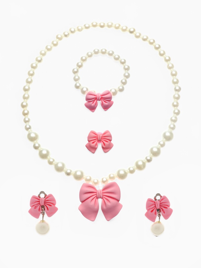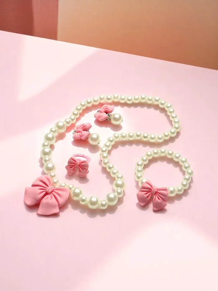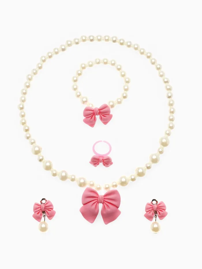 Комплект включает кулон, браслет, кольцо и клипсы, выполненные из безопасного пластика, что обеспечивает комфорт и долговечность. Мягкие оттенки и аккуратные формы делают каждое изделие универсальным аксессуаром для повседневных образов или особых случаев. Такой набор станет отличным подарком или дополнением к личной коллекции украшений вашей девочки.