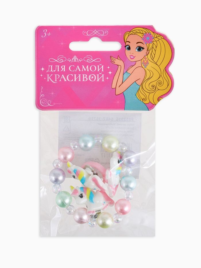 Набор детский «Выбражулька. Единорог», 3 предмета: клипсы, браслет d=5 см, кольцо, цветной — Характеристики