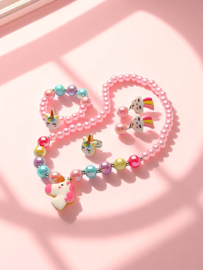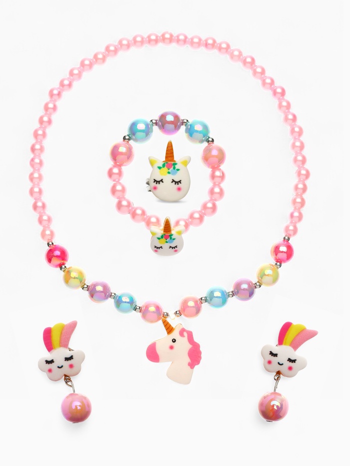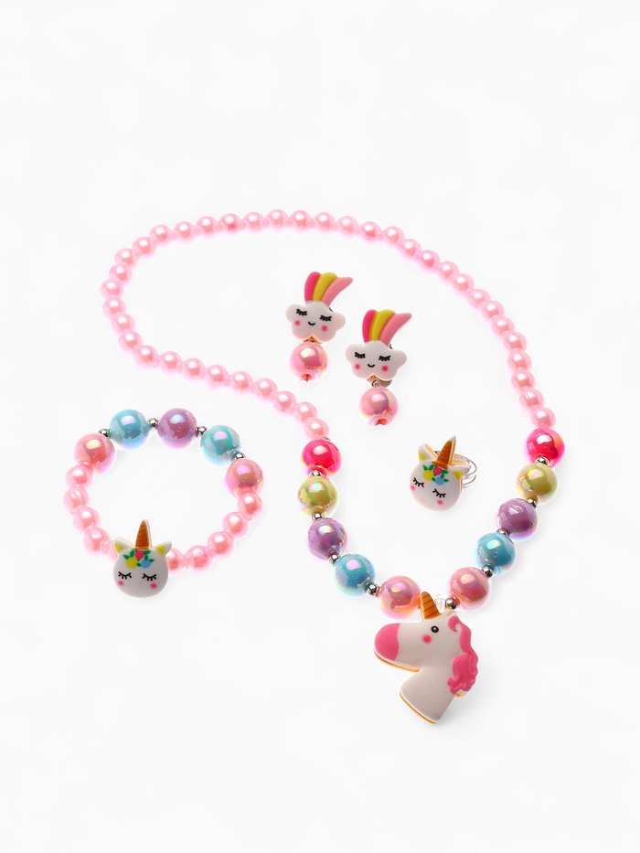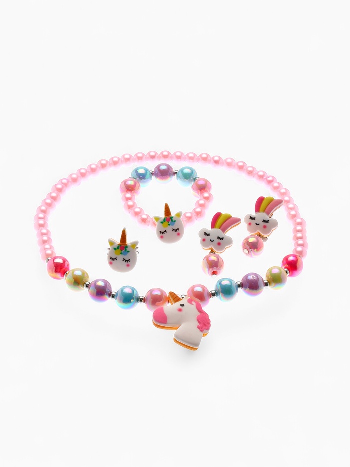 Набор детский Выбражулька «Единорог» 4 предмета: кулон, браслет, кольцо, клипсы цв. разноц — Характеристики