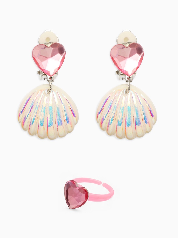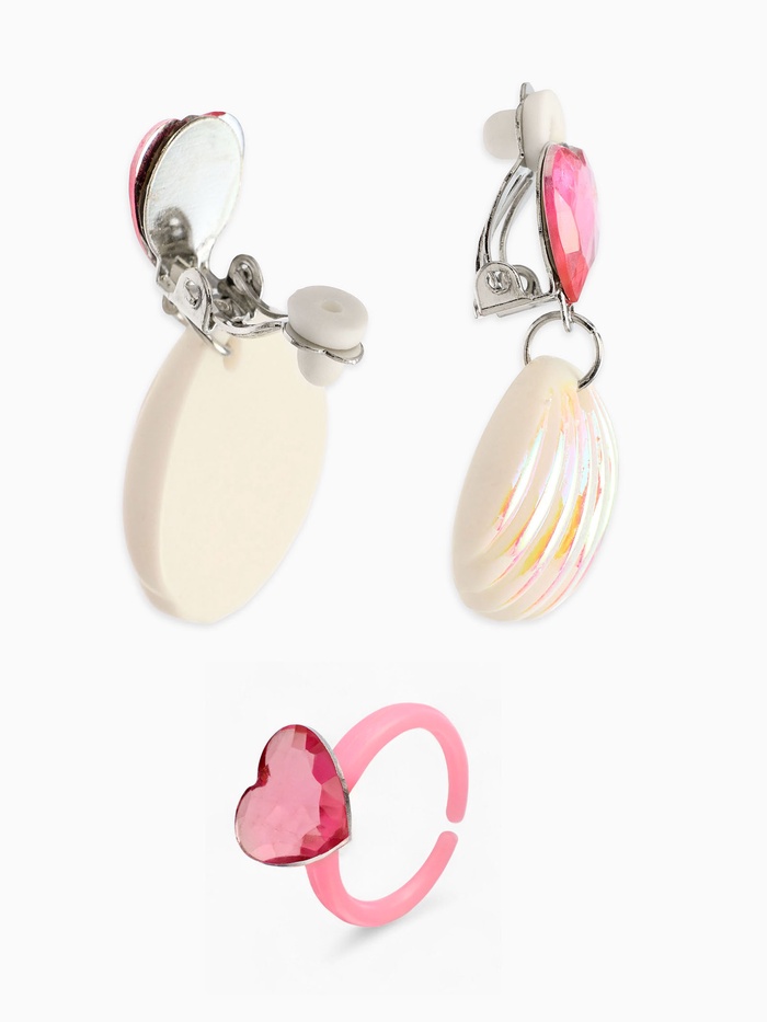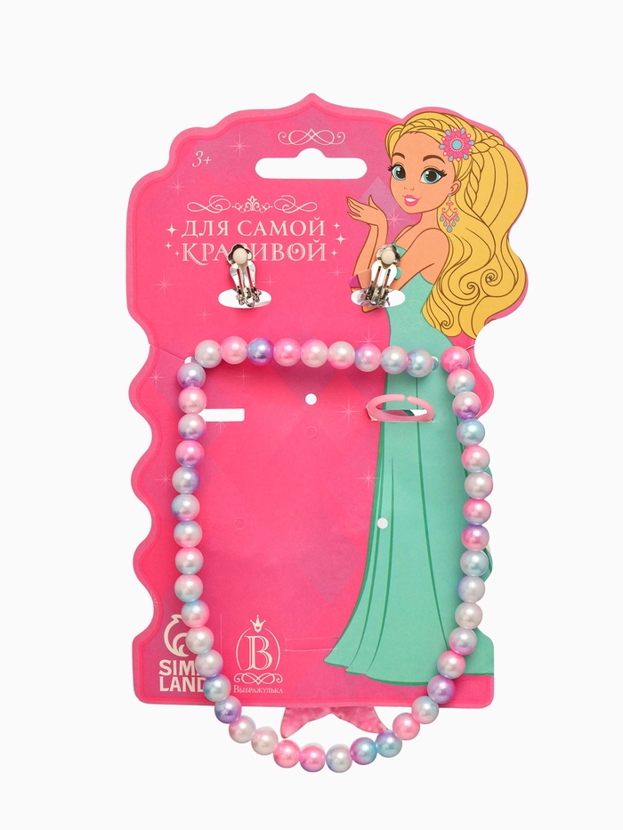 Набор детский «Выбражулька. Русалочка», 4 предмета: клипсы, кольцо, браслет, бусы, бело-розовый — Характеристики