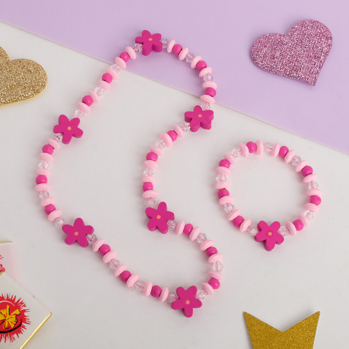 Набор детский Выбражулька «Цветочки» 2 предмета: бусы, браслет d=6 см., розовый — Характеристики
