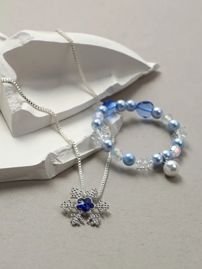 Подарите своей маленькой принцессе волшебство зимней сказки с этим очаровательным набором, состоящим из кулона и браслета в бело-голубых тонах! Эти украшения идеально подходят для юных модниц, позволяя им выразить свою индивидуальность и добавить яркие акценты в любой наряд.