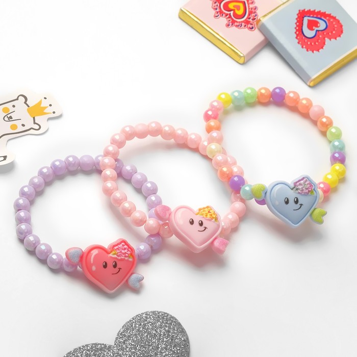 Набор детских браслетов «Выбражулька» сердца, d=5 см. цветные