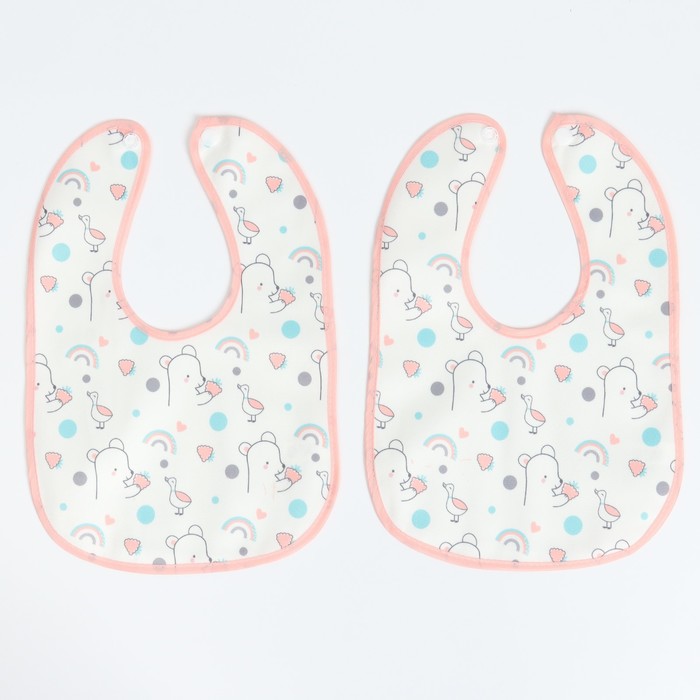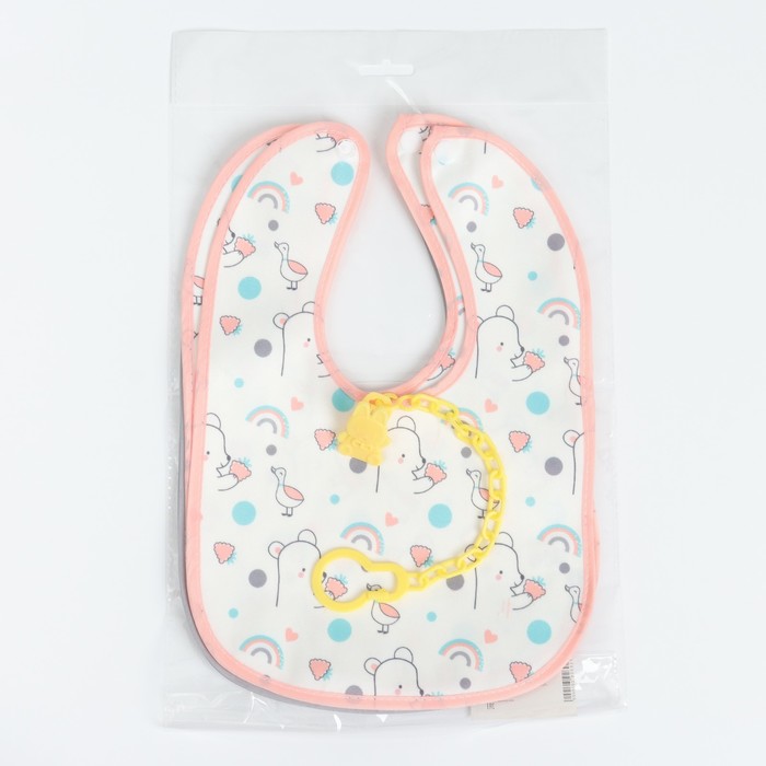 Набор детских слюнявчиков Крошка Я, 4 шт. + подарок, 29х20 см., цвет розовый, серый