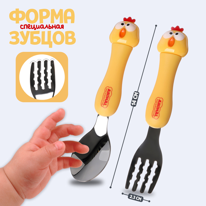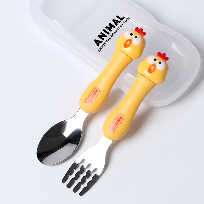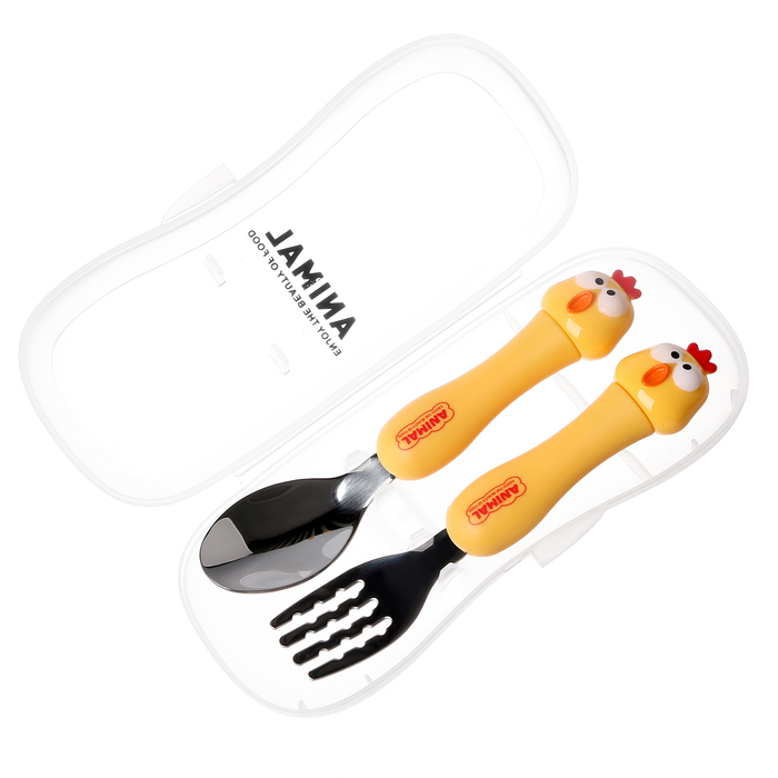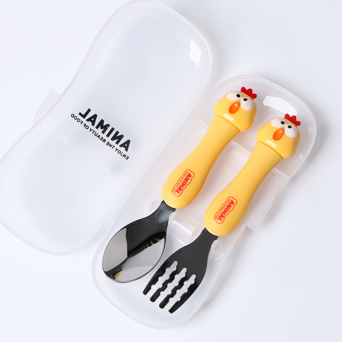 Набор детских столовых приборов в футляре «Курочки», вилка, ложка — Характеристики