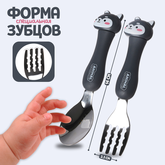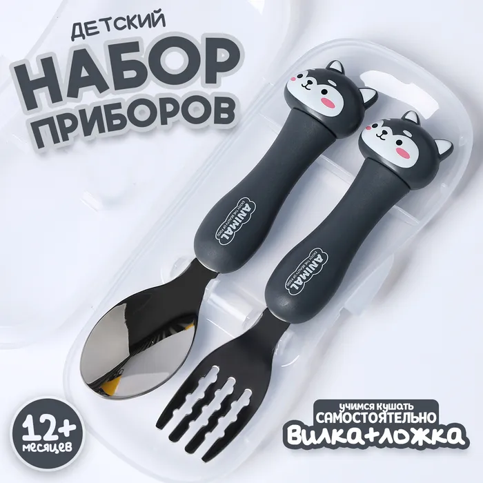 Набор детских столовых приборов в футляре «Щенята», вилка, ложка — Характеристики