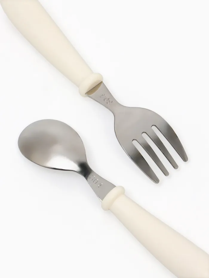 Набор детских столовых приборов в футляре: вилка, ложка Крошка Я бежевый — Характеристики