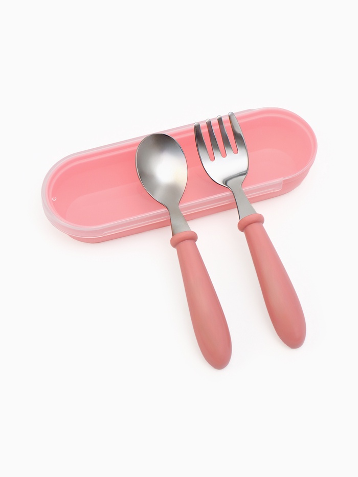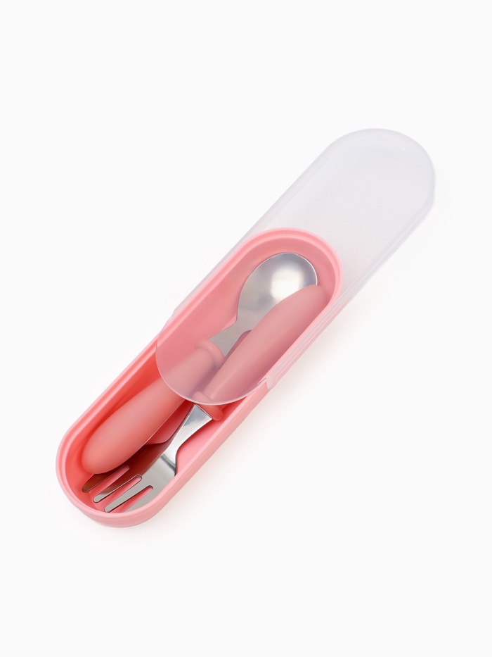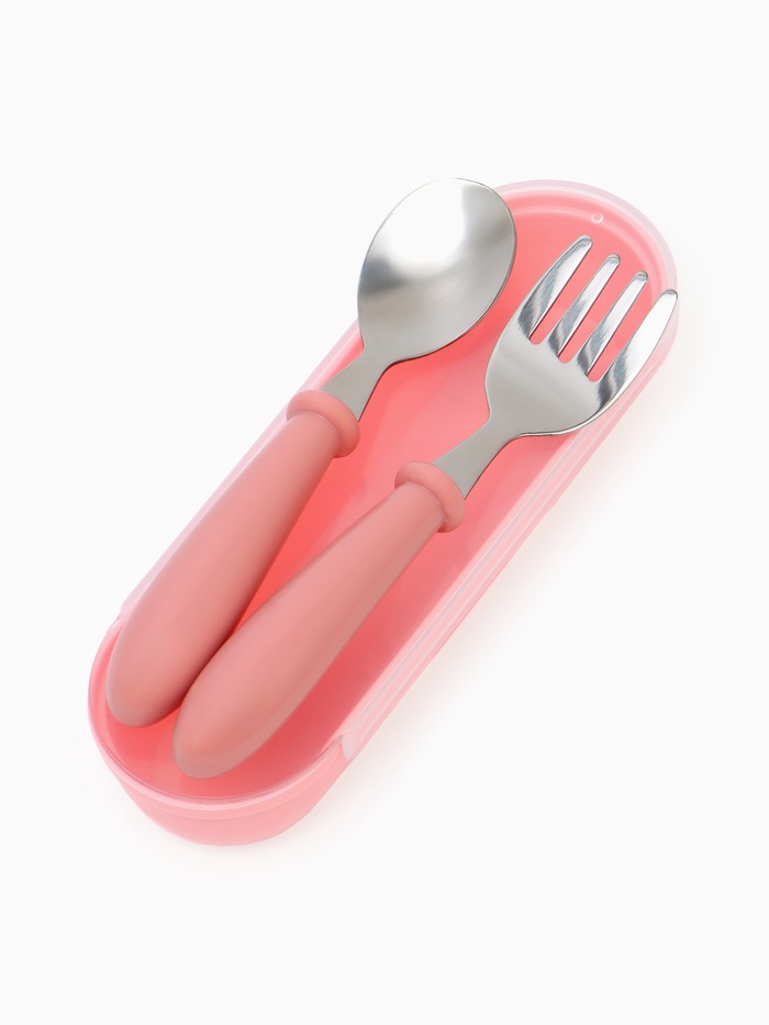 Набор детских столовых приборов в футляре: вилка, ложка Крошка Я розовый