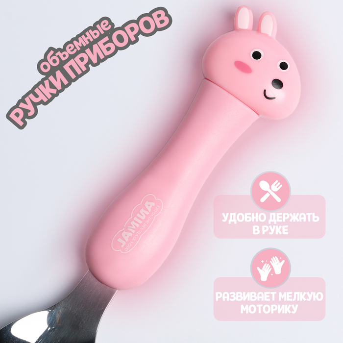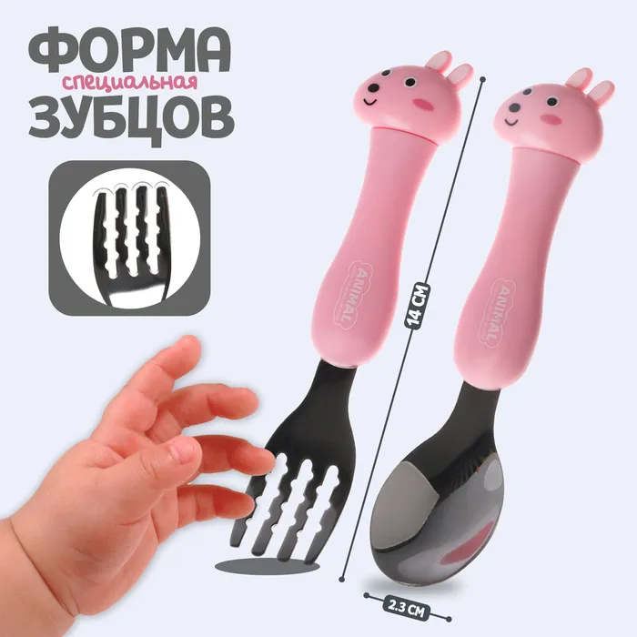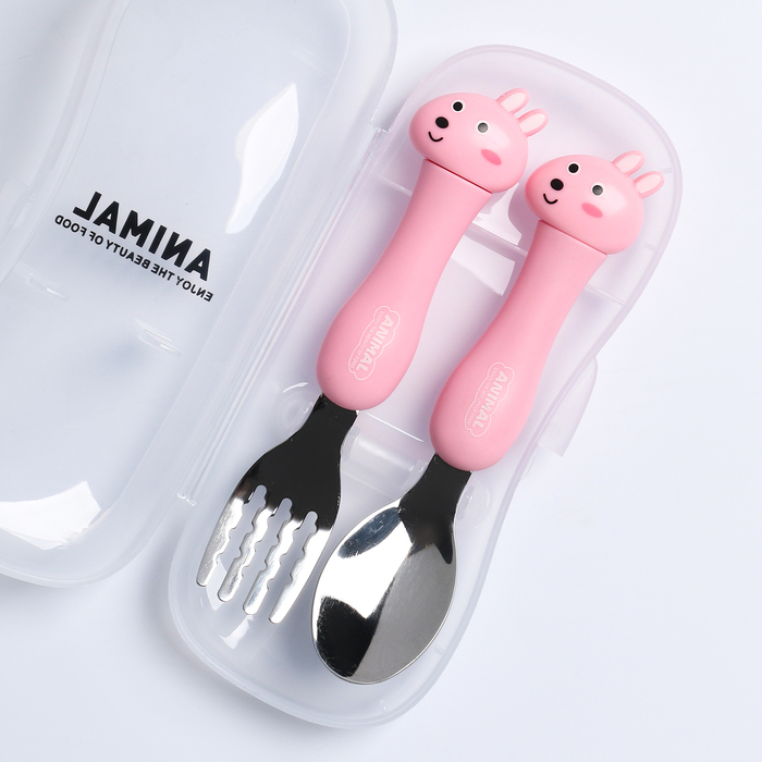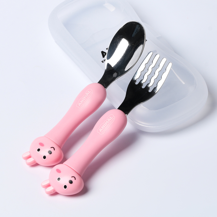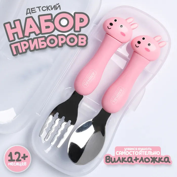 Набор детских столовых приборов в футляре «Зайчата», вилка, ложка — Характеристики