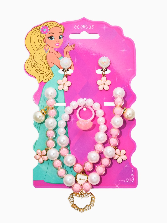 Набор детских украшений «Выбражулька. Нежность», 4 предмета: клипсы, кольцо, бусы, браслет, розовый, белый — Характеристики