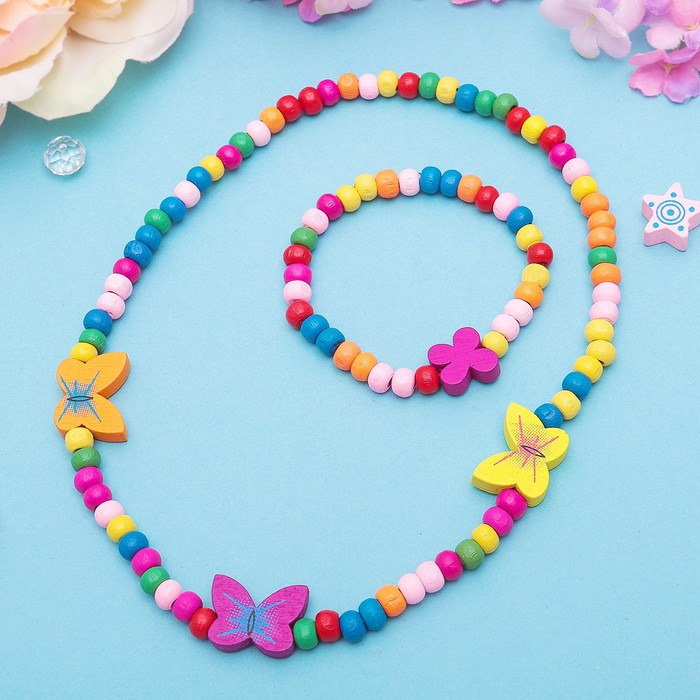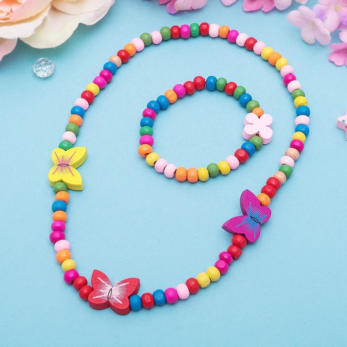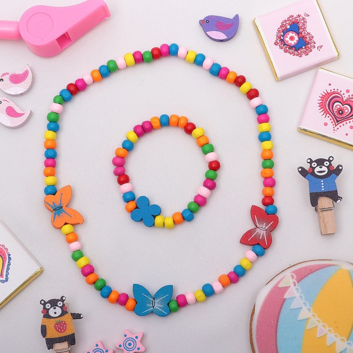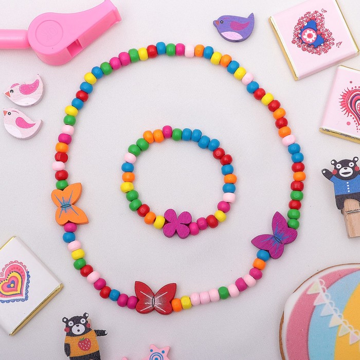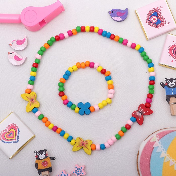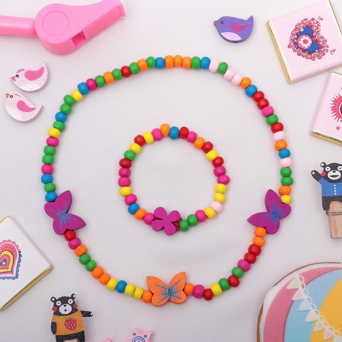 Набор детских украшений Выбражулька «Нежность бабочки», 2 предмета: бусы, браслет d=4.6 см разноцветный — Характеристики