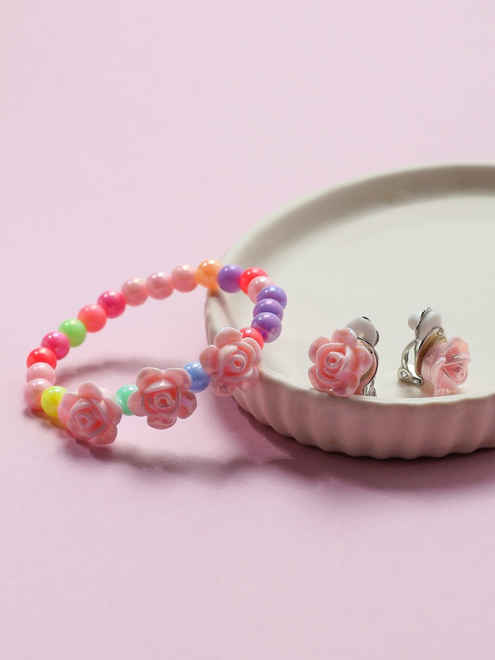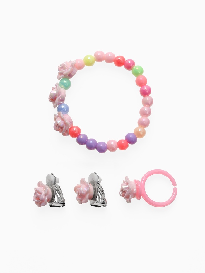 Набор детских украшений Выбражулька «Розы», 3 предмета: клипсы, браслет d=5 см кольцо, разноцветный — Характеристики