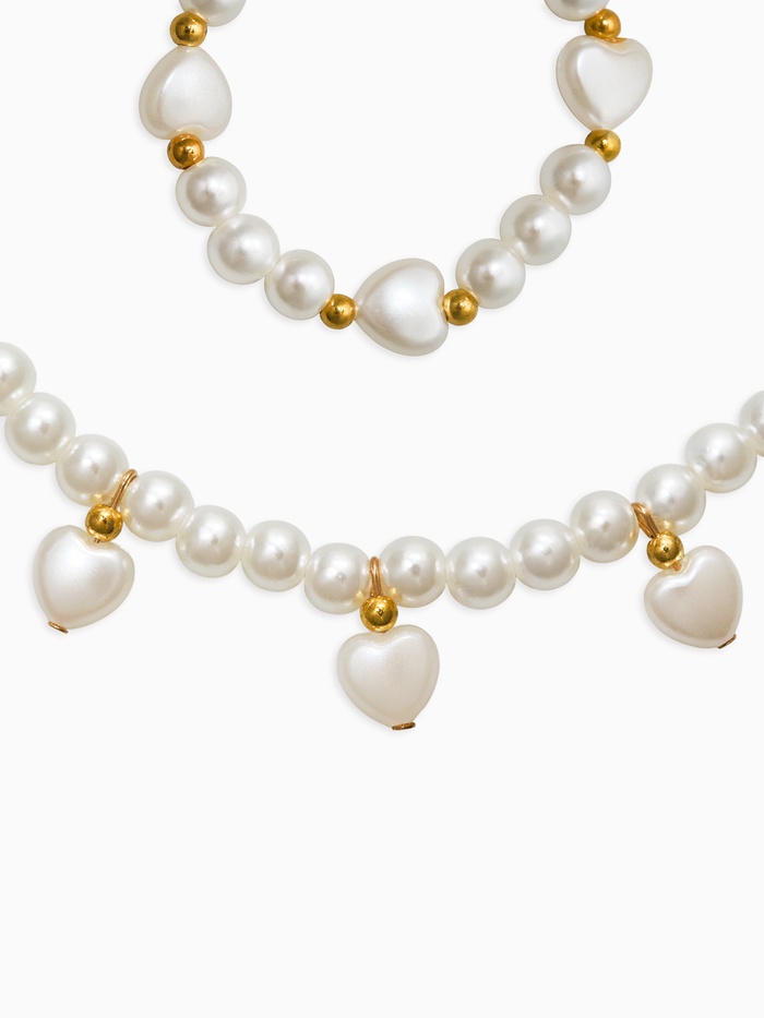 - Семейный дизайн: Всевозможные сердечки и жемчужные мотивы связывают элементы друг с другом, создавая целостный образ.