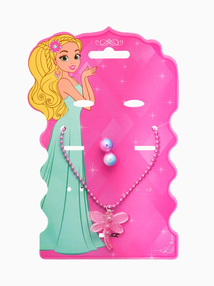 Набор детских украшений «Выбражулька. Стрекоза», 2 предмета: кулон, пусеты, розовый — Характеристики