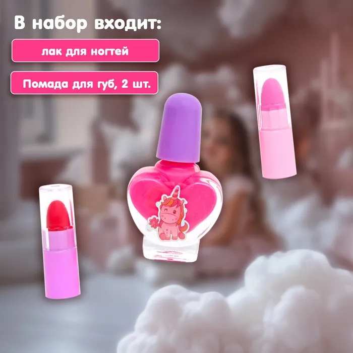 Набор детской косметики для девочек с лаком для ногтей и помадами - идеальный выбор для маленьких модниц, которые хотят выразить свою индивидуальность и создать яркие образы.