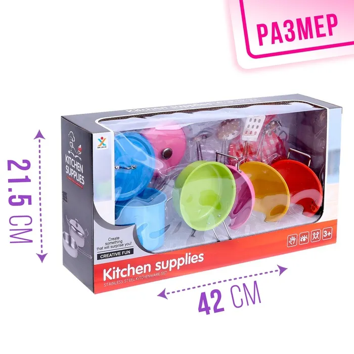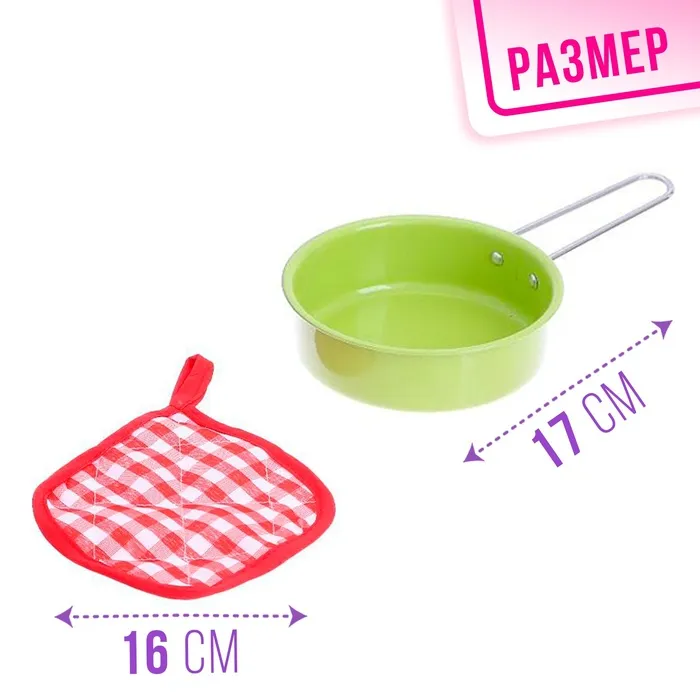 Набор металлической детской посуды «Шеф-повар» станет прекрасным дополнением к игровой кухне или самостоятельной игрушкой для юных любителей готовки. Этот комплект поможет ребёнку почувствовать себя настоящим кулинаром, увлекая в мир ролевых игр и развивая фантазию.