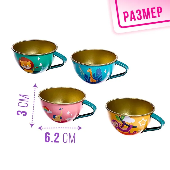 Набор металлической детской посуды «Зверята» станет прекрасным дополнением к игровой кухне или самостоятельной игрушкой для юных любителей чаепитий. Благодаря качественным материалам и яркому дизайну, этот комплект идеально подходит для малышей, начиная с трёх лет.