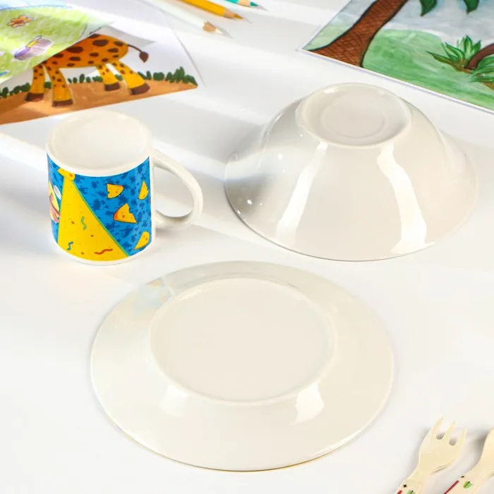 Яркая посуда с детским рисунком будет радовать малыша всякий раз, когда будет наступать время приёма пищи. Выполнена из высококачественной керамики, обладает насыщенным цветом. Сможет стать настоящим украшением кухни или приятным подарком для малыша!