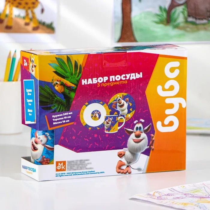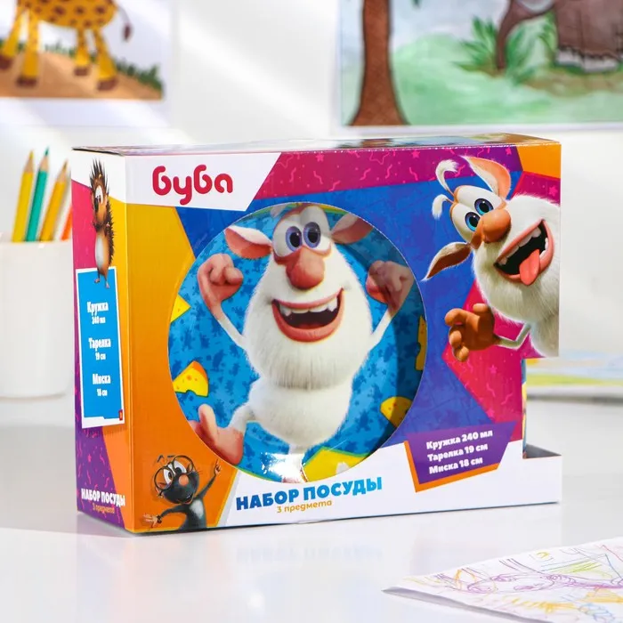 Набор детской посуды «Буба»: 3 предмета: кружка 240 мл, салатник d=18 см, тарелка d=19 см — Характеристики