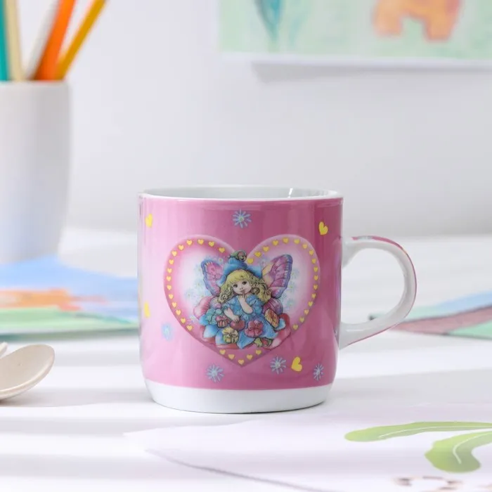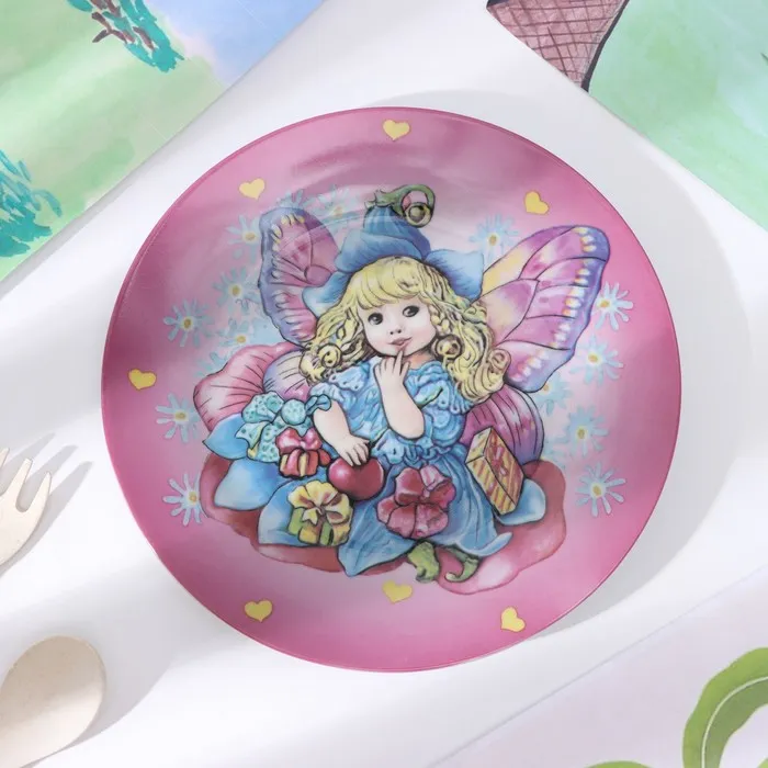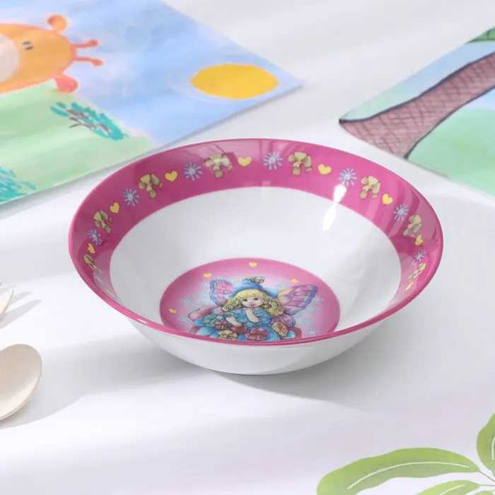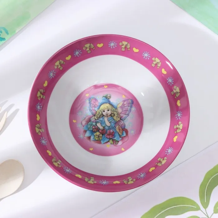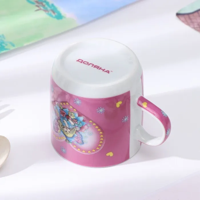 Набор детской посуды Доляна «Дюймовочка», 3 предмета: кружка 230 мл, миска 400 мл, тарелка d=18 см, керамика, розовый — Характеристики