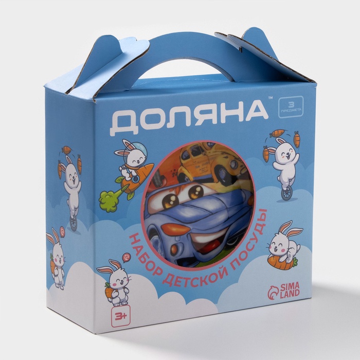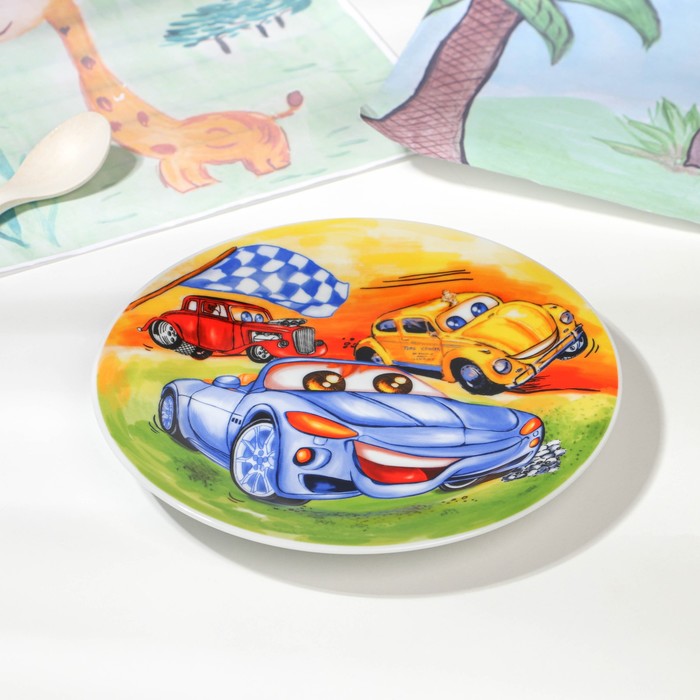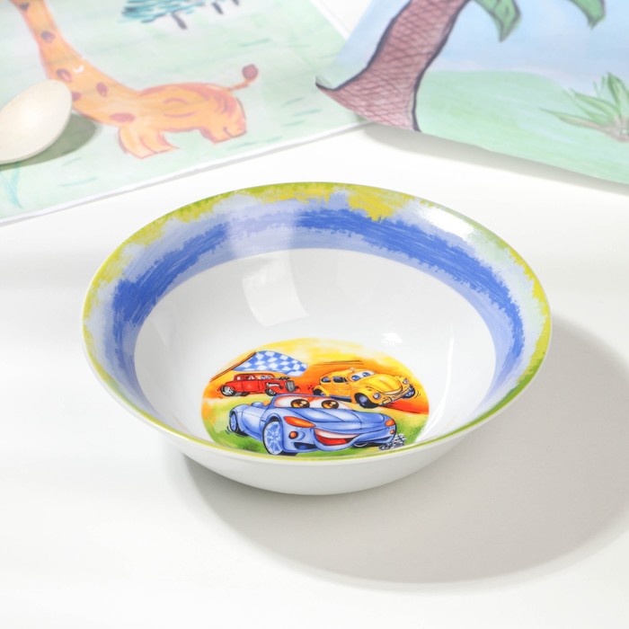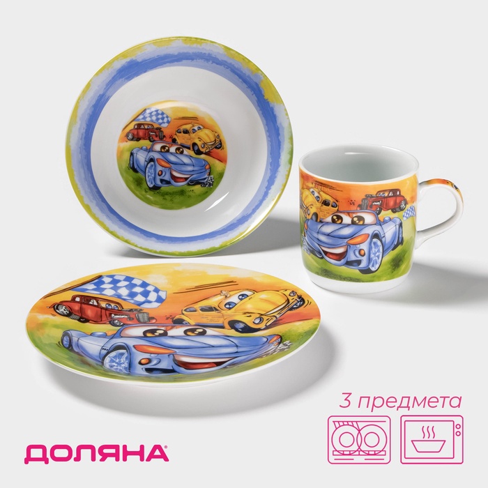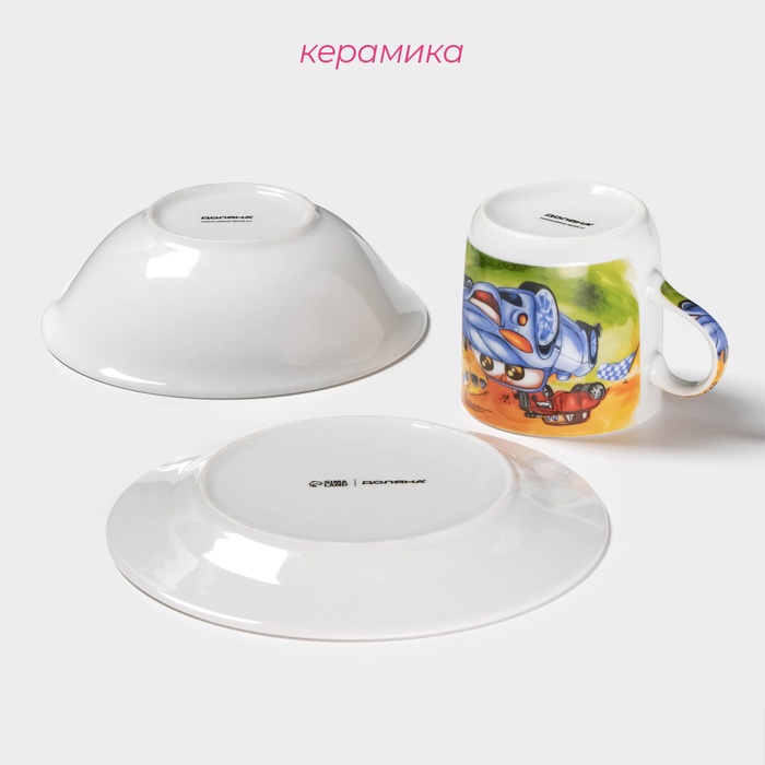 Набор детской посуды Доляна «Гонки», 3 предмета: кружка 230 мл, миска 400 мл, тарелка d=18 см, керамика, разноцветный