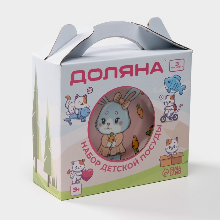 Набор детской посуды Доляна «Лапочка зайка», 3 предмета: кружка 230 мл, миска 400 мл, тарелка d=18 см, керамика, белый — Характеристики