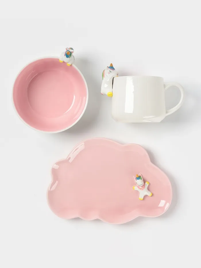 Превратите каждый прием пищи в волшебное путешествие с этим очаровательным набором детской посуды. В комплект входят: кружка (350 мл), супница (450 мл) и тарелка, выполненные из безопасной керамики в нежном розовом цвете. Фигурка радужного единорога добавит сказочного настроения. Подходит для использования в микроволновой печи и посудомоечной машине.