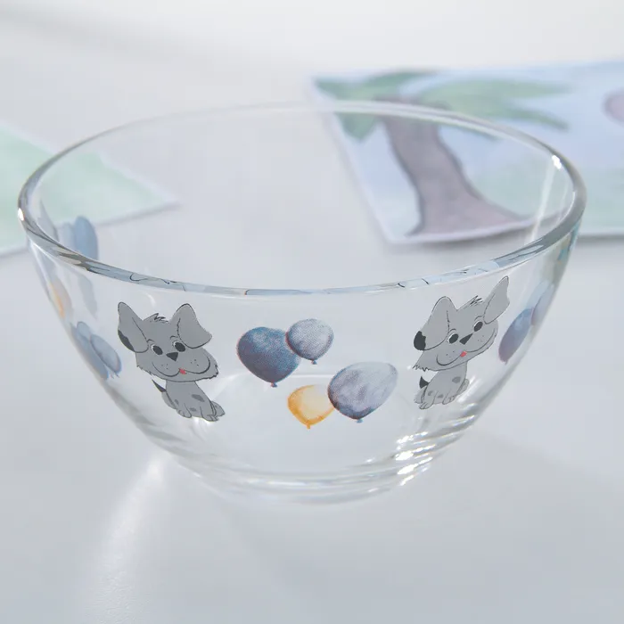 Набор детской посуды Доляна «Шарик», 3 предмета: кружка 200 мл, миска 450 мл, тарелка d=20 см, стекло, прозрачный, синий — Характеристики