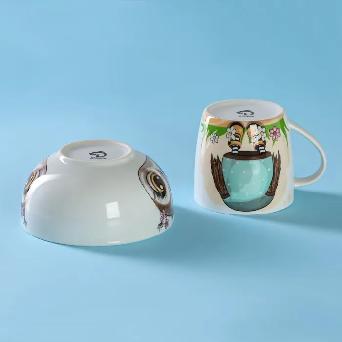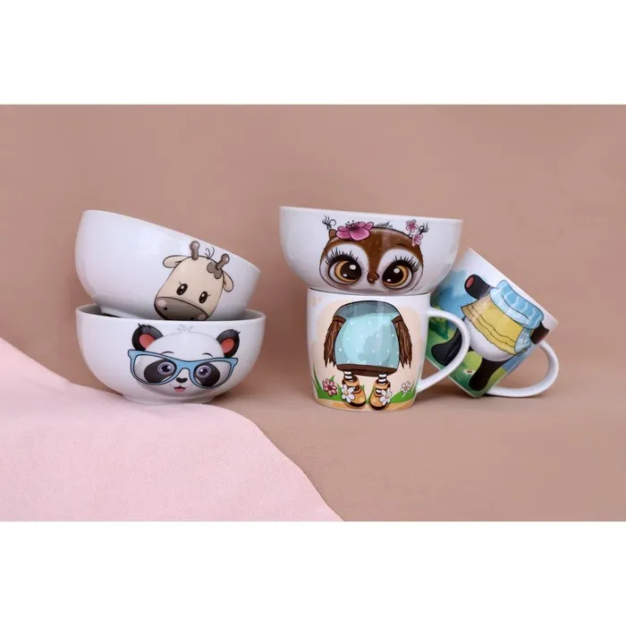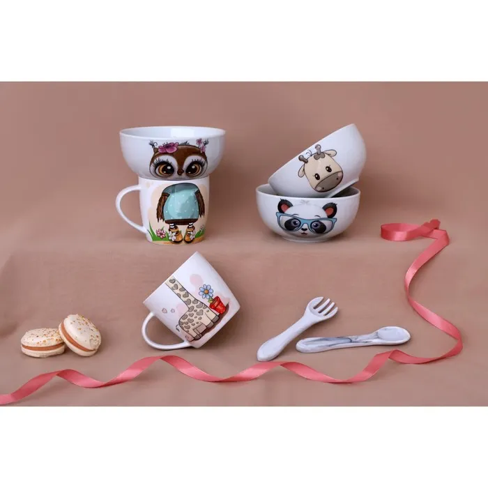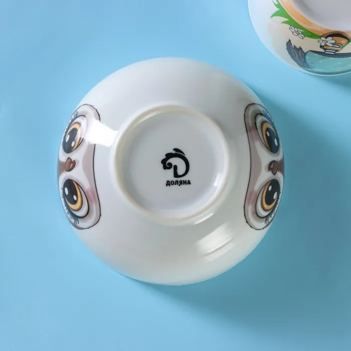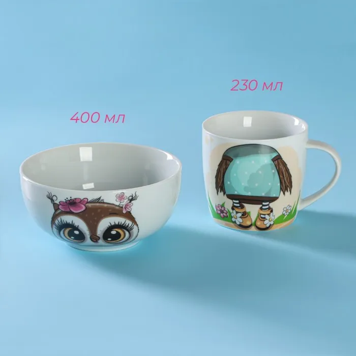 Набор детской посуды Доляна «Совенок», 2 предмета: кружка 230 мл, миска 400 мл, керамика, белый — Характеристики