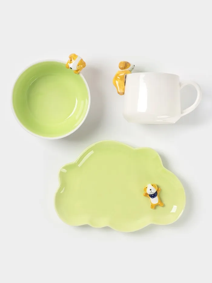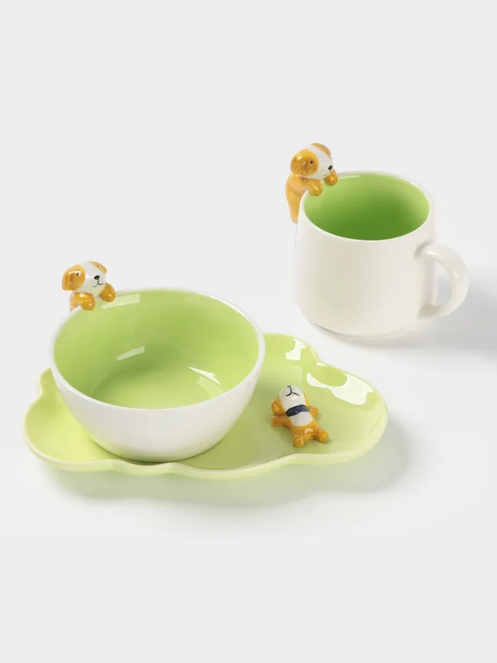 Набор детской посуды Доляна «Верный друг», 3 предмета: кружка 350 мл, супница 450 мл, тарелка, керамика, зелёный — Характеристики