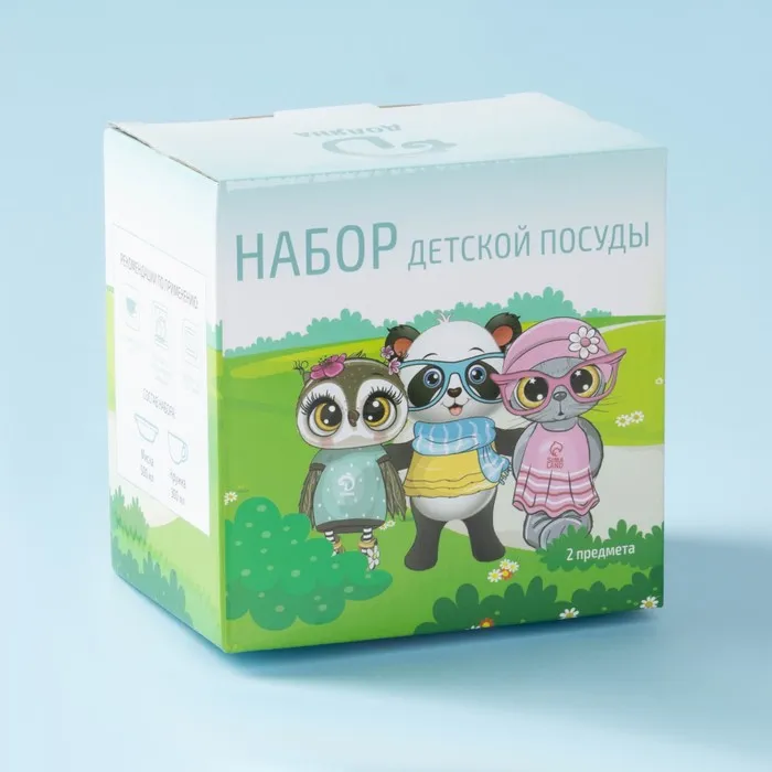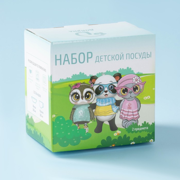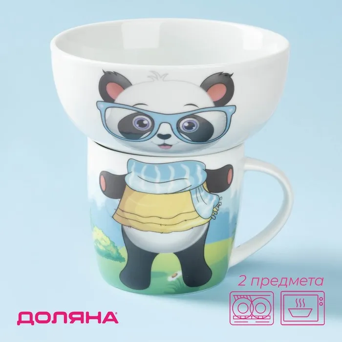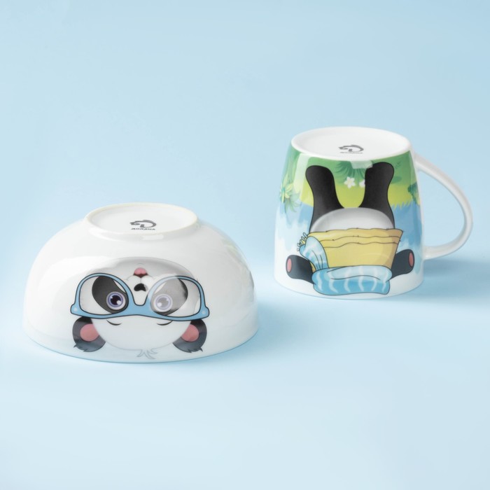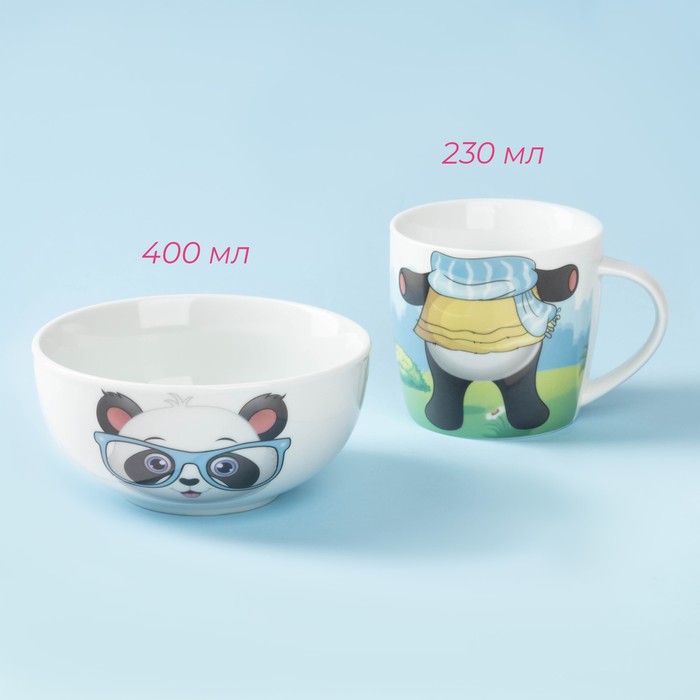 Набор детской посуды из керамики Доляна «Панда», 2 предмета: кружка 230 мл, миска 400 мл, цвет белый — Характеристики