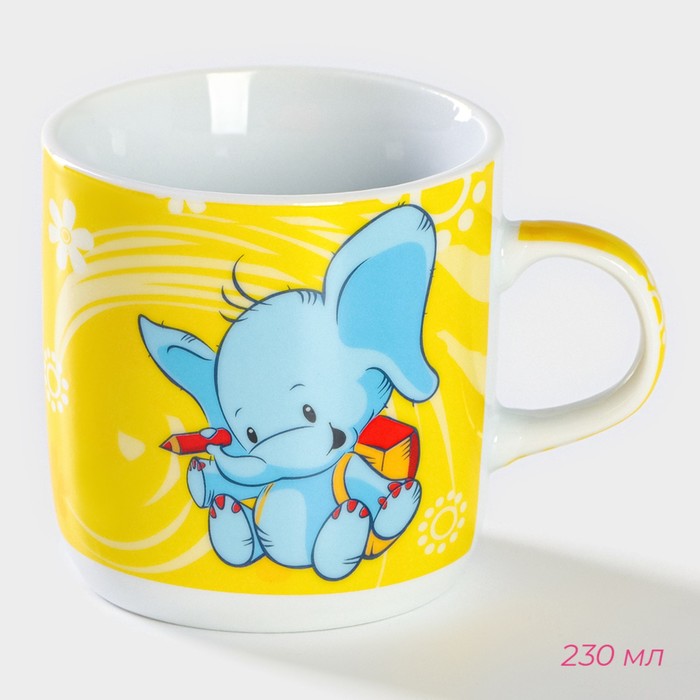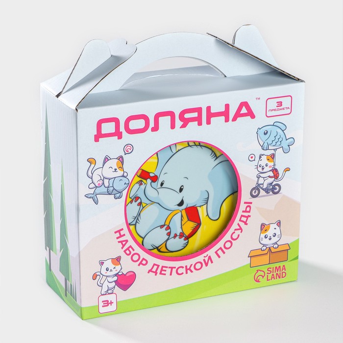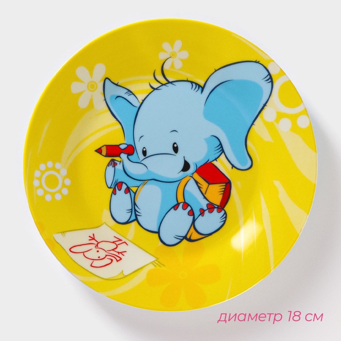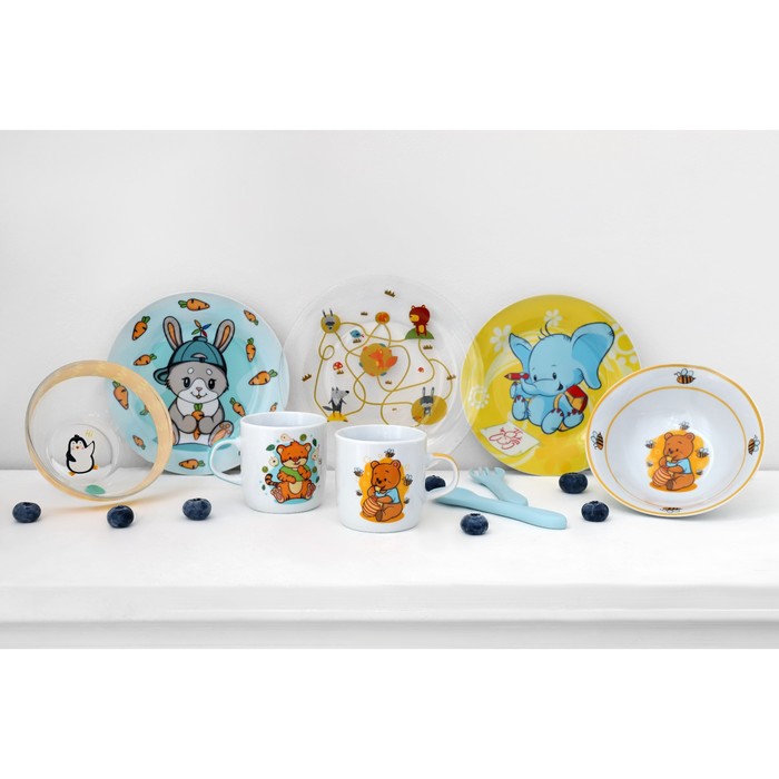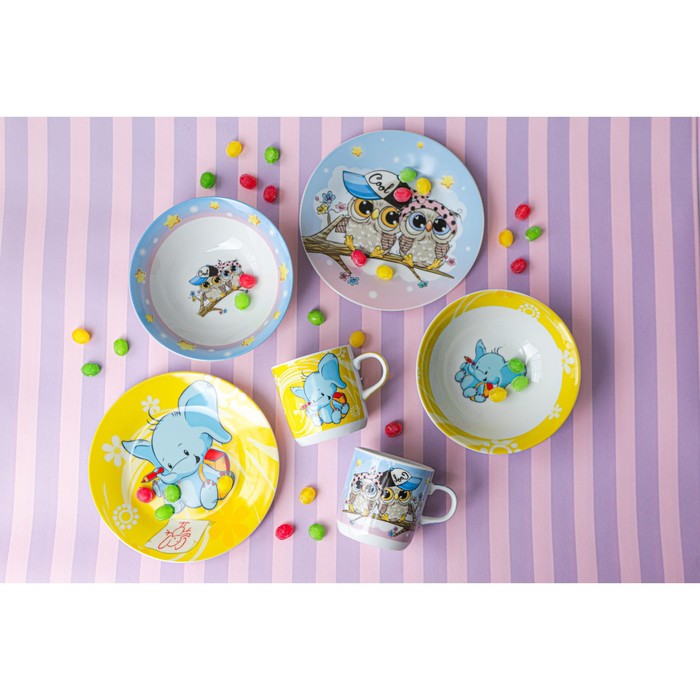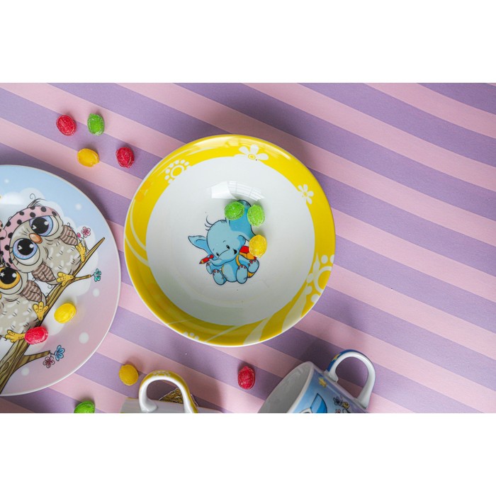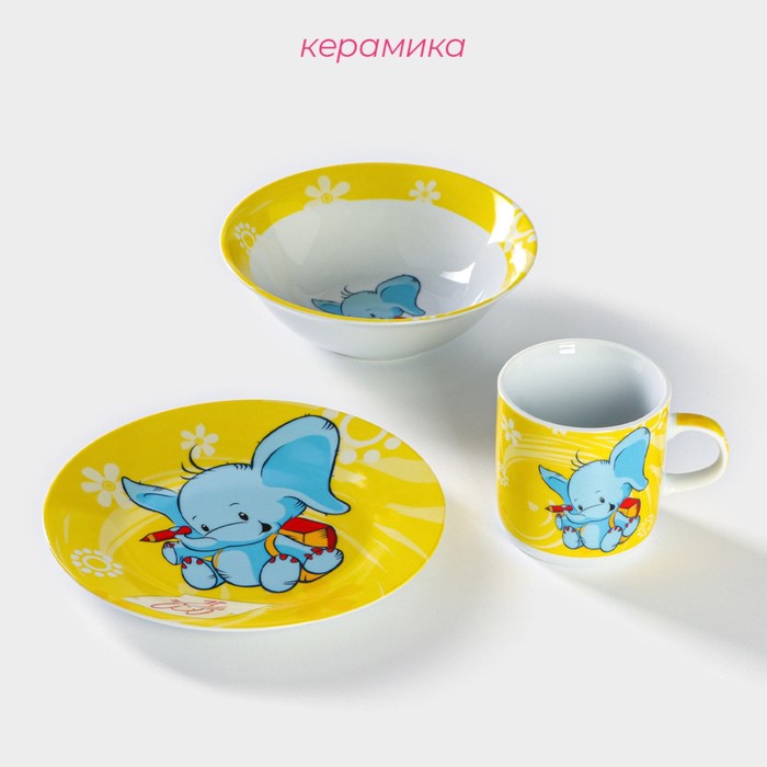 Набор детской посуды из керамики Доляна «Слонёнок», 3 предмета: кружка 230 мл, миска 400 мл, тарелка d=18 см — Характеристики