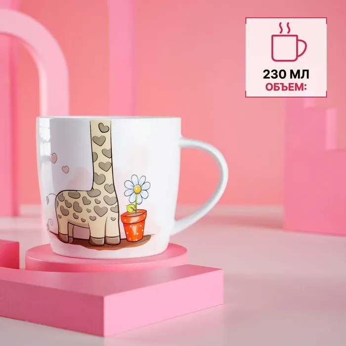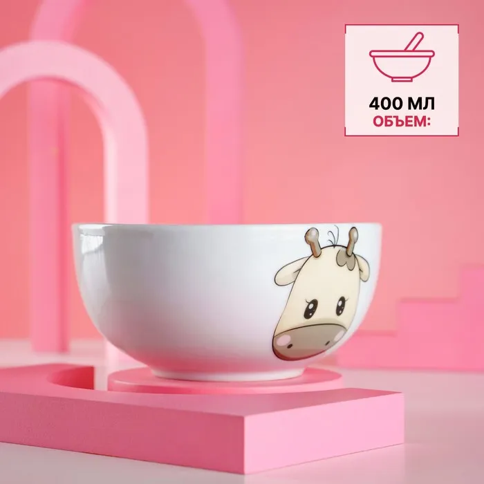 Набор детской посуды из керамики Доляна «Жирафик», 2 предмета: кружка 230 мл, миска 400 мл, цвет белый — Характеристики