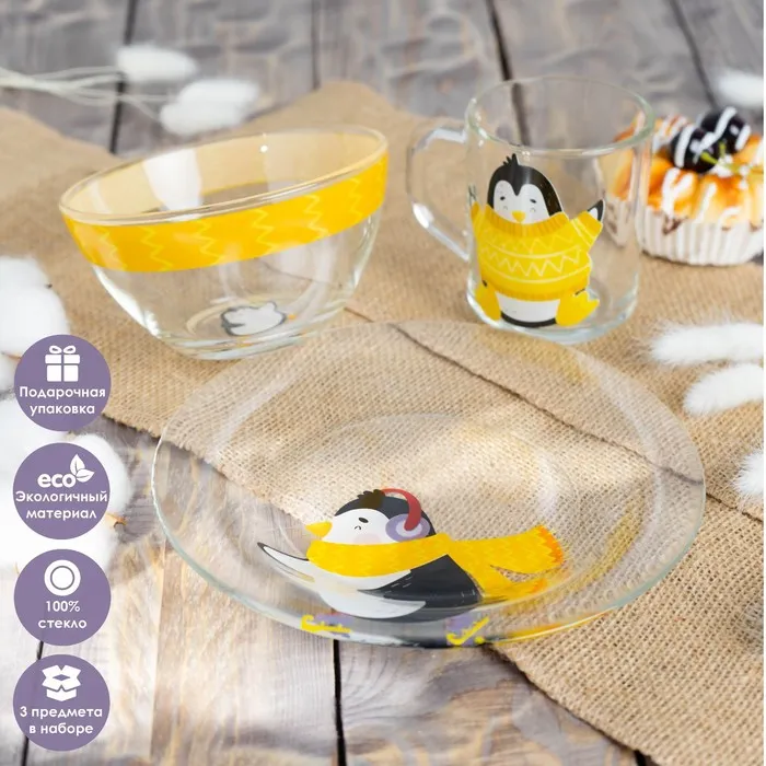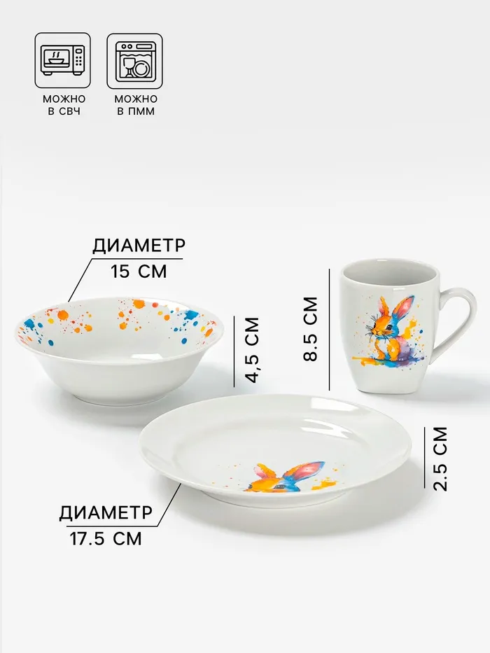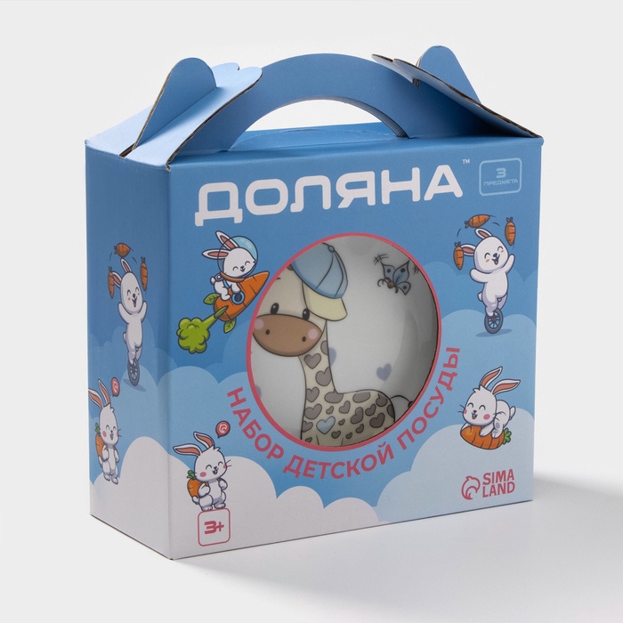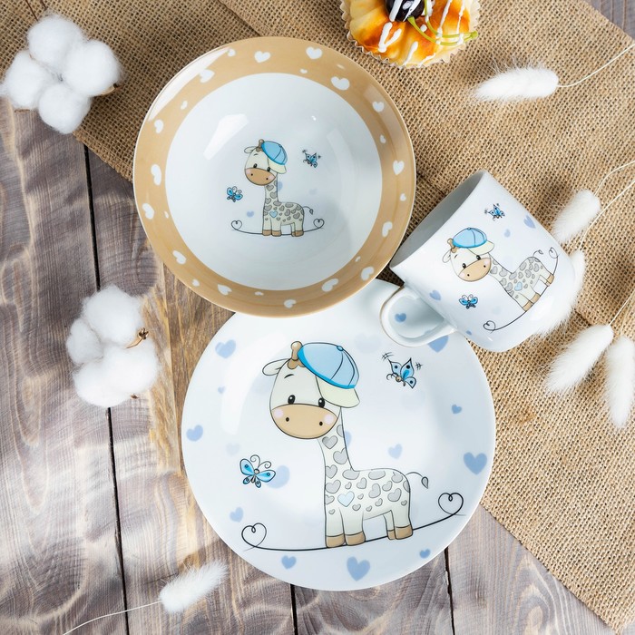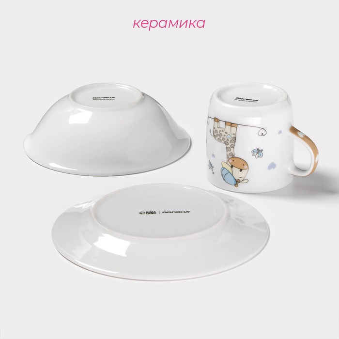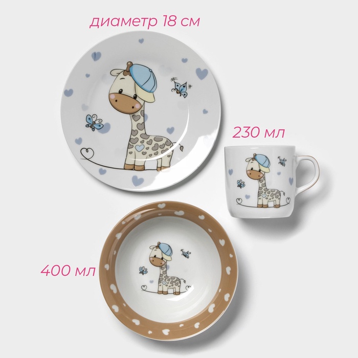 Набор детской посуды из керамики Доляна «Жирафик», 3 предмета: кружка 230 мл, миска 400 мл, тарелка d=18 см — Характеристики