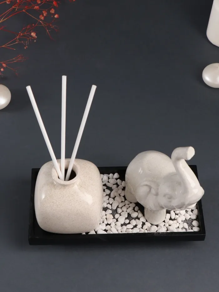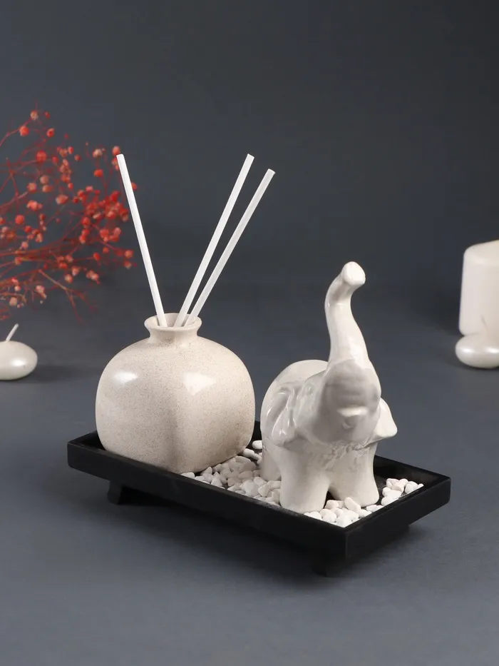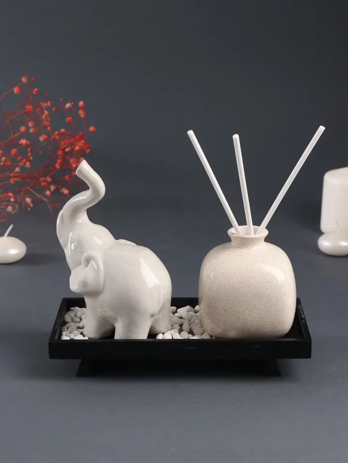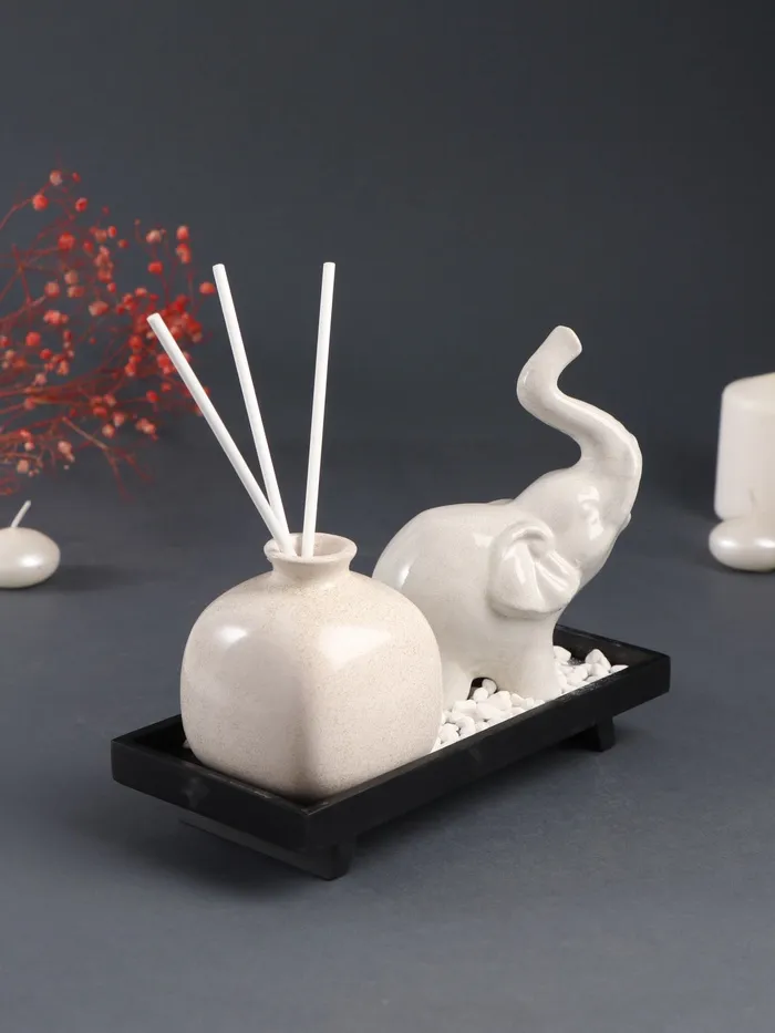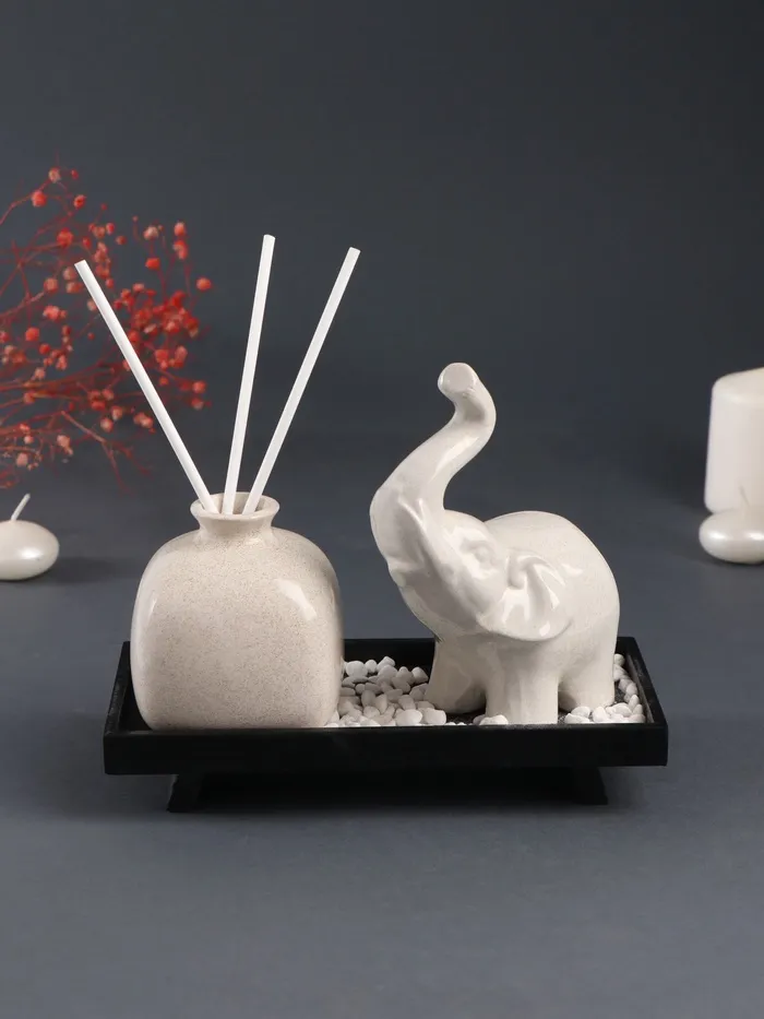 Белый керамический диффузор и статуэтка в форме слона не просто украсит интерьер, но и наполнит воздух изысканными ароматами эфирных масел. В комплекте вы найдёте всё необходимое для создания особой атмосферы: