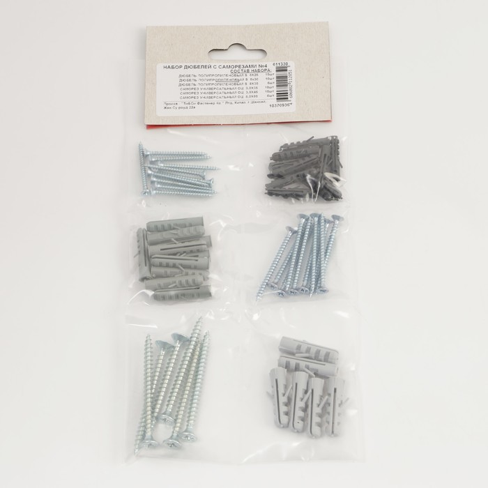 Набор дюбелей с саморезами № 4, 52 предметов в наборе — Характеристики