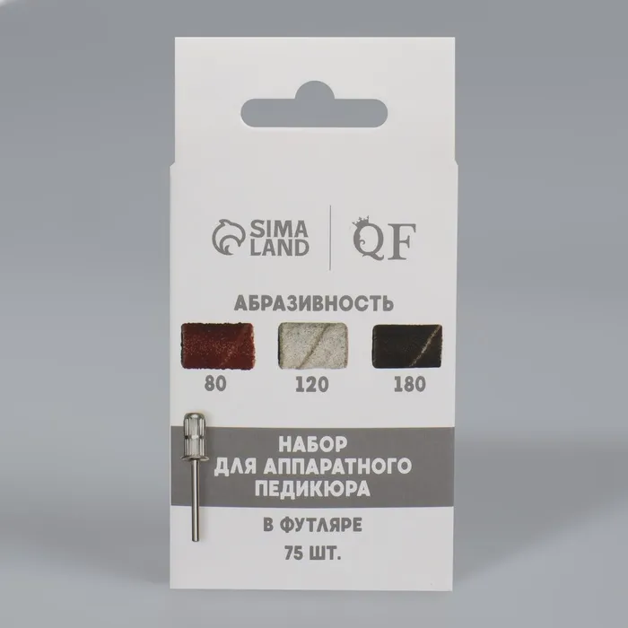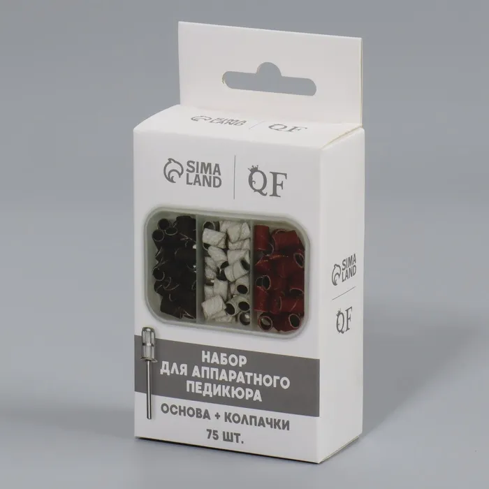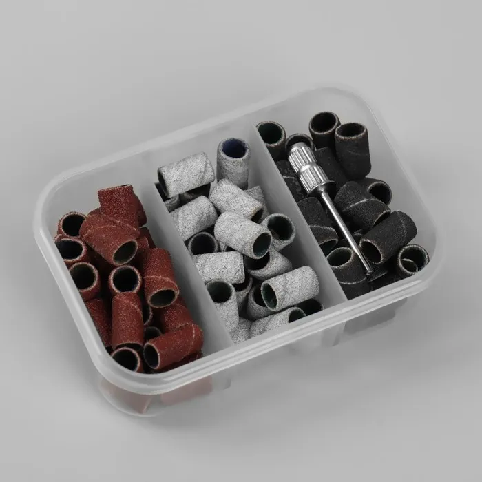 Набор для аппаратного педикюра, основа, колпачки 75 шт., абразивность 80/120/180, в футляре — Характеристики