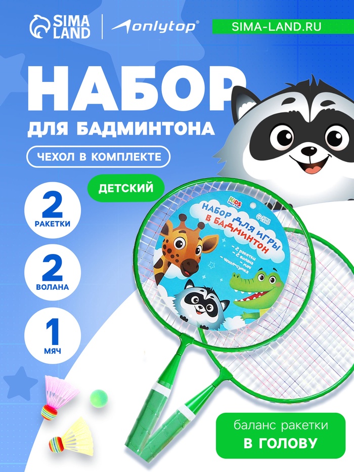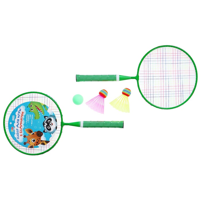 Набор для бадминтона ONLYTOP «Друзья»: 2 ракетки 44 см, 2 волана, мяч, чехол, цвет зелёный — Характеристики