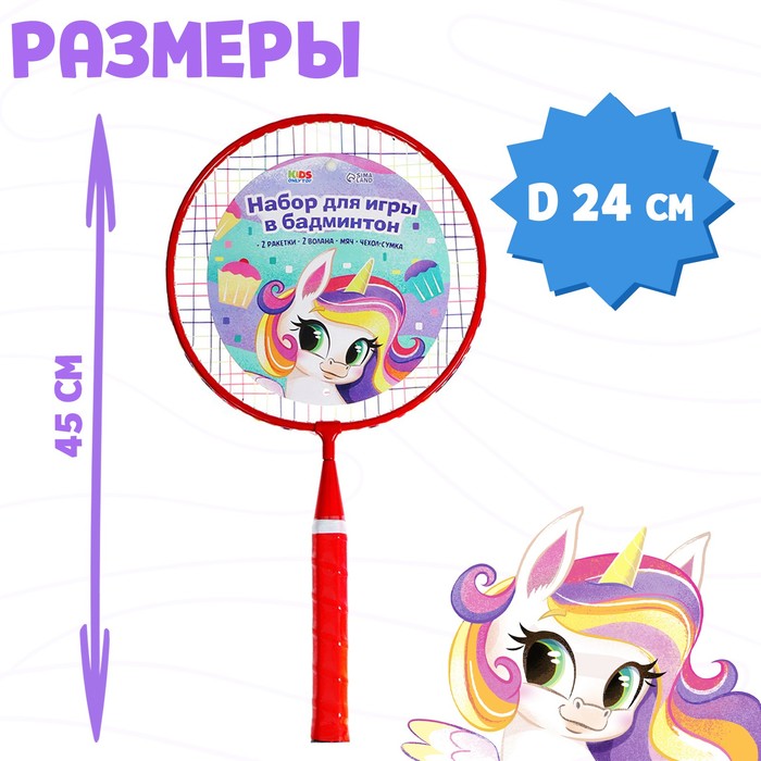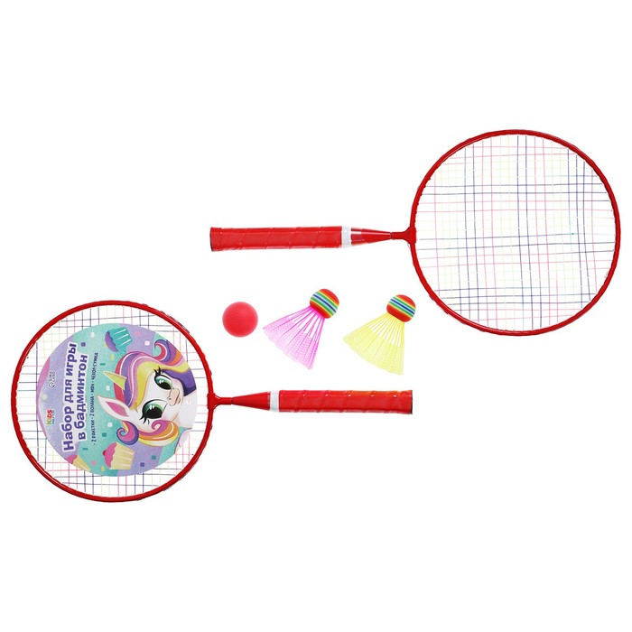 Набор для бадминтона ONLYTOP «Пони»: 2 ракетки 44 см, 2 волана, мяч, чехол, цвет красный — Характеристики