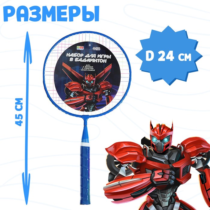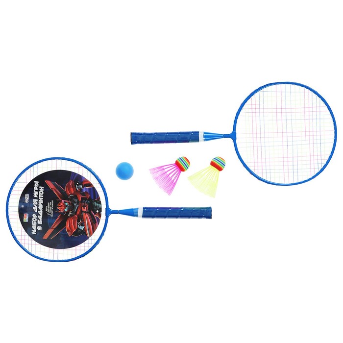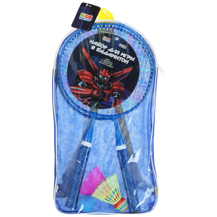 Набор для бадминтона ONLYTOP «Робот»: 2 ракетки 44 см, 2 волана, мяч, чехол, цвет синий — Характеристики
