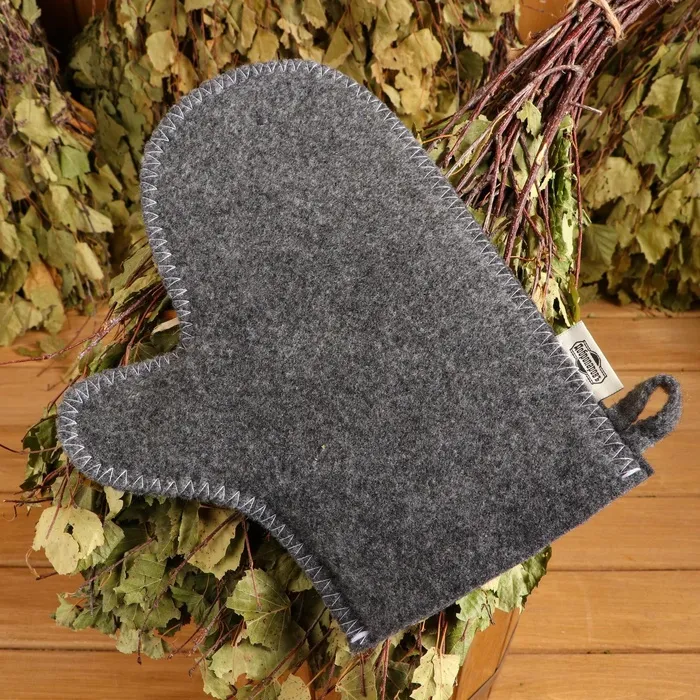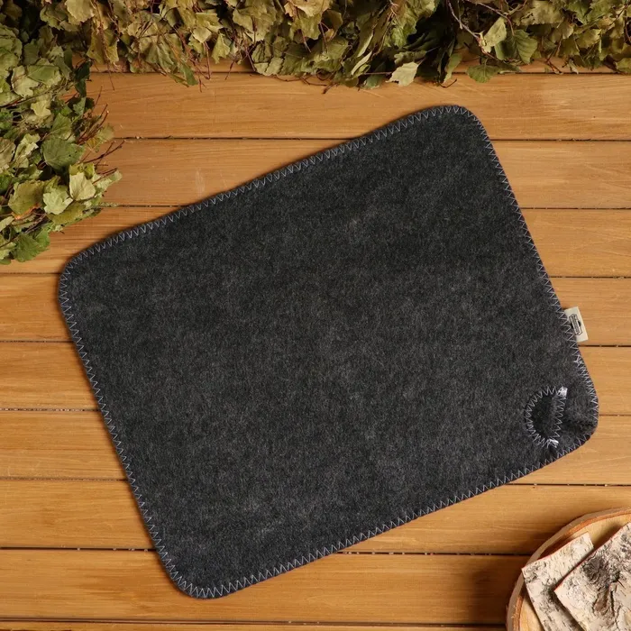 Тапочки из войлока и коврик впитывают влагу и сохраняют сухость, что обеспечивает комфорт во время посещения парной.