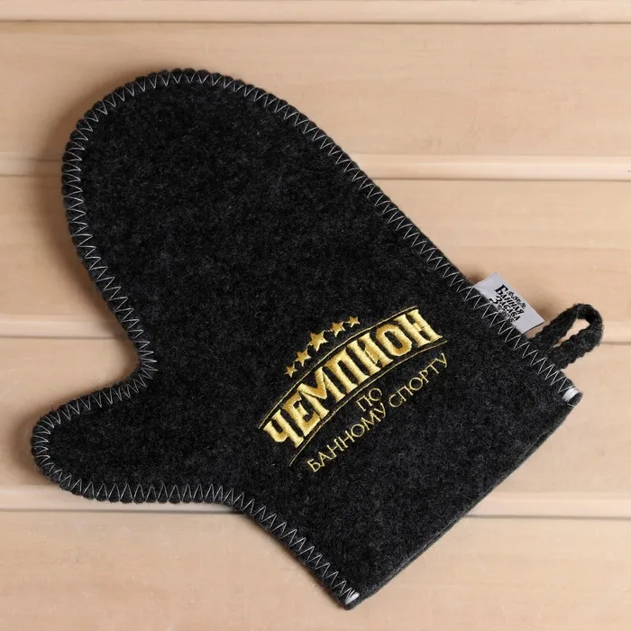 Набор для бани "Чемпион по банному спорту" 2 предмета шапка, варежка с вышивкой