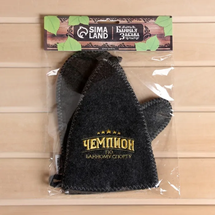 Набор для бани "Чемпион по банному спорту" 2 предмета шапка, варежка с вышивкой — Характеристики