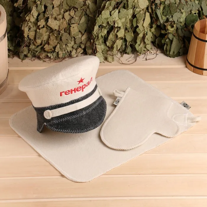 Для комфортного отдыха в парной возьмите с собой набор банных принадлежностей. Предметы из этого комплекта предохраняют тело от перегрева и являются средствами индивидуального пользования. Влажные изделия рекомендуется сушить в расправленном виде на горизонтальной поверхности. Принадлежности из войлока и фетра стирайте вручную при температуре воды 30 °C.
