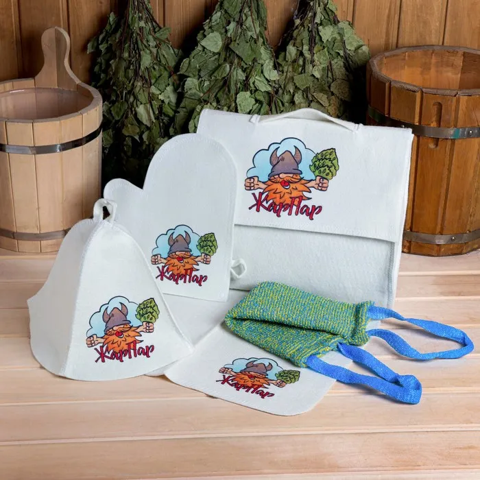 Для комфортного отдыха в парной возьмите с собой набор банных принадлежностей. Предметы из этого комплекта предохраняют тело от перегрева и являются средствами индивидуального пользования. Влажные изделия рекомендуется сушить в расправленном виде на горизонтальной поверхности. Принадлежности из войлока и фетра стирайте вручную при температуре воды 30 °C.