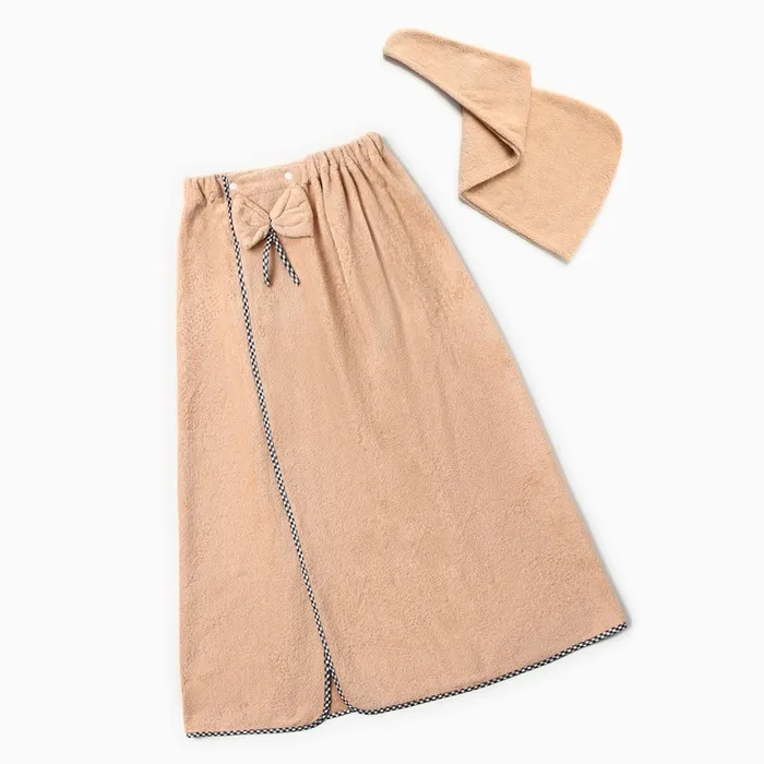 Набор для бани и ванной Этель "Бантик", цв коричневый: полотенце-парео 75*120 см + чалма
