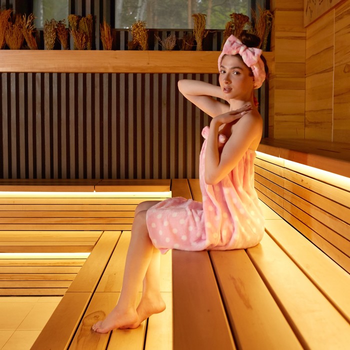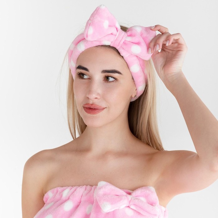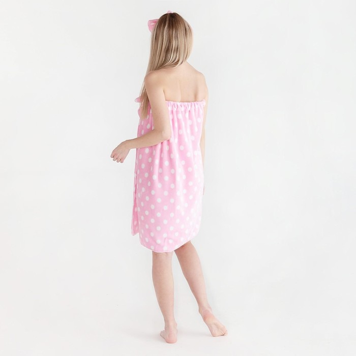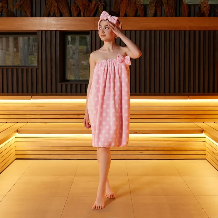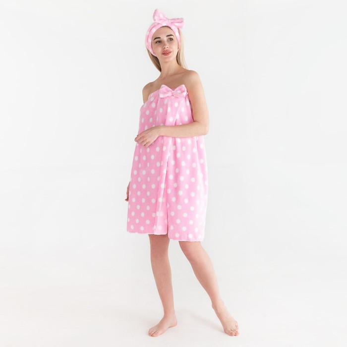 Набор для бани и ванной «Этель. Горох», полотенце - парео 75×120 см, повязка, розовый — Характеристики