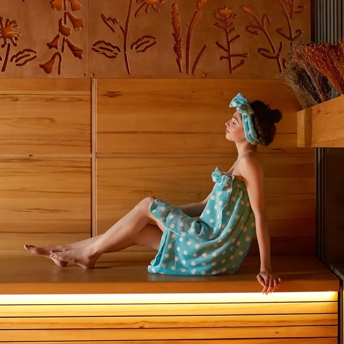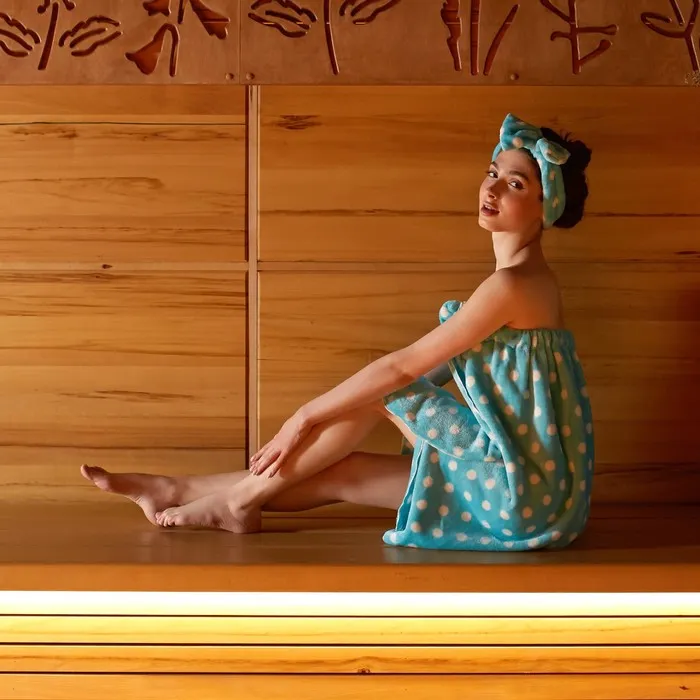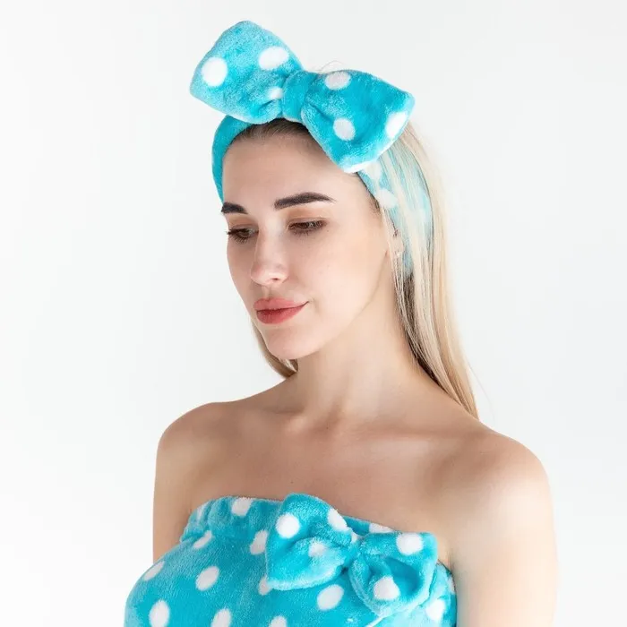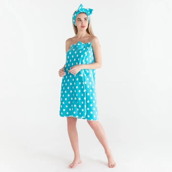 Набор для бани и ванной Этель "Горох"полотенце-парео 75*120 см+повязка, цв.голубой — Характеристики